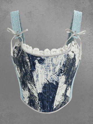 Gothic Grommet Lace-up Bowknot Panel Skulls Lace Halter Dress