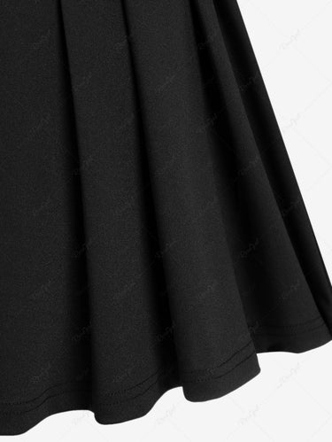 Gothic Buckle Grommet Straps Pleated Solid Skirt(3 Days Delivery)