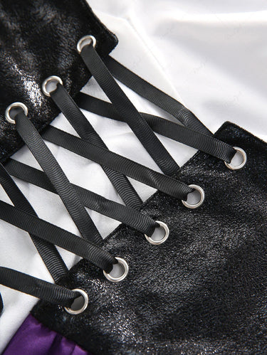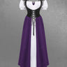 Gothic Plus Size Medieval Renaissance Puff Sleeve V Notch Lace Up Ruched Layered Patchwork Corset Halloween A Line Dress(3 Days Delivery)