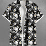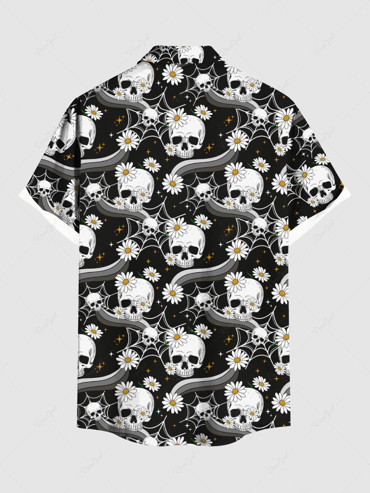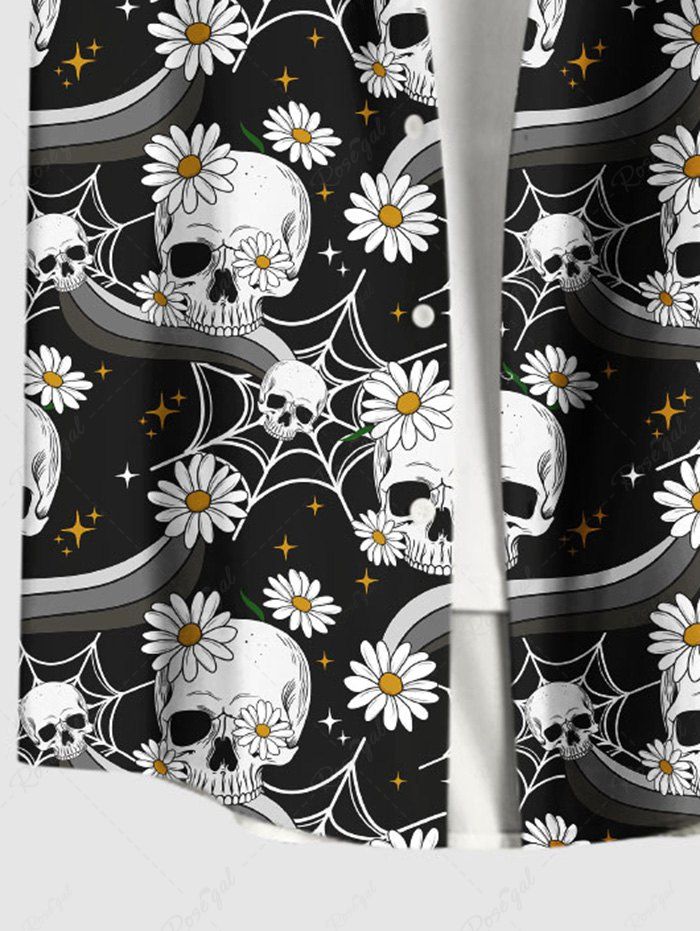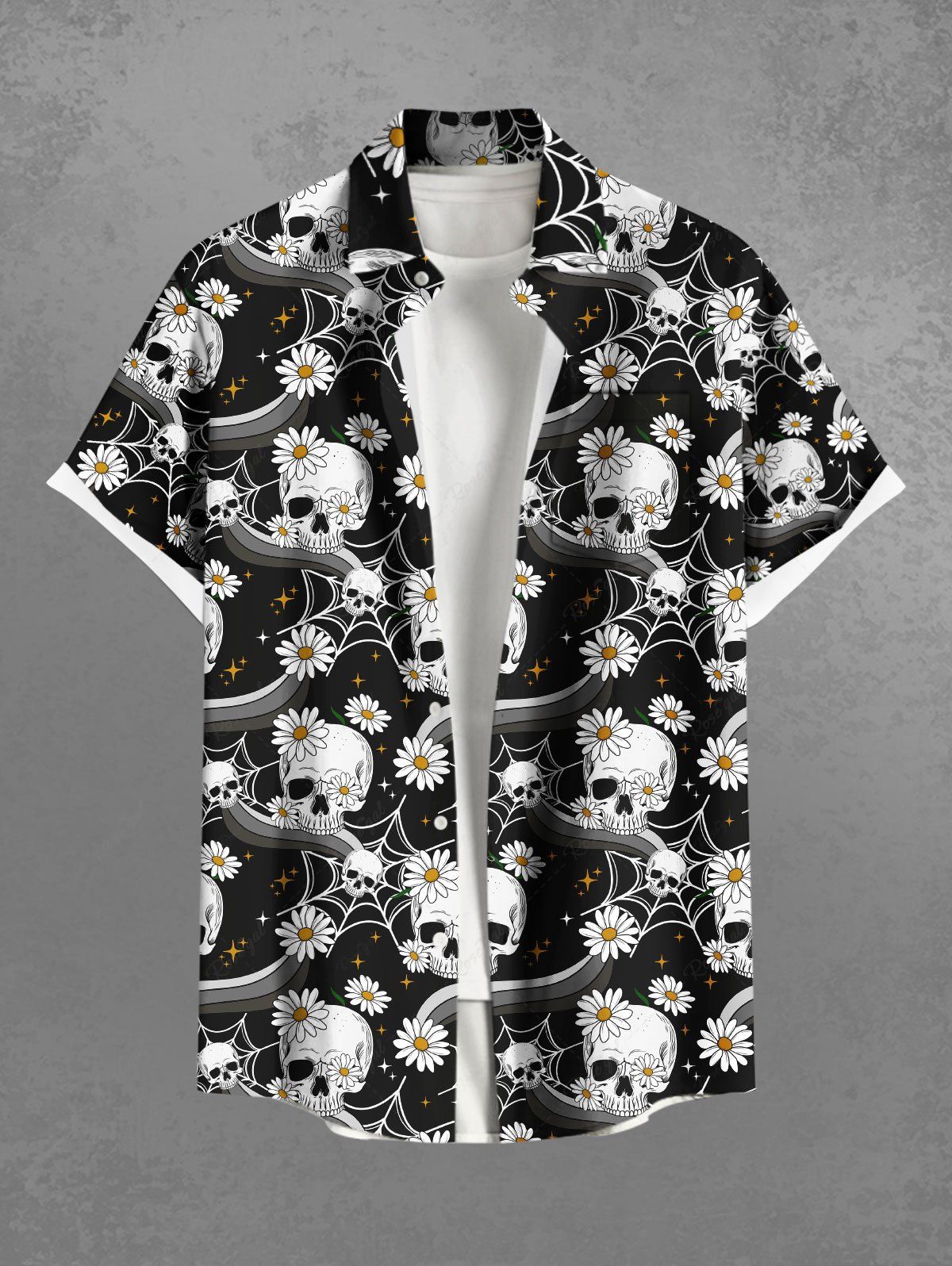 Gothic Plus Size Skull Daisy Flower Spider Web Print Button Pocket Shirt For Men