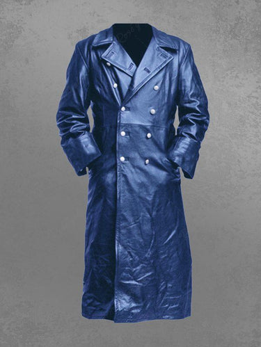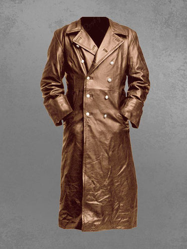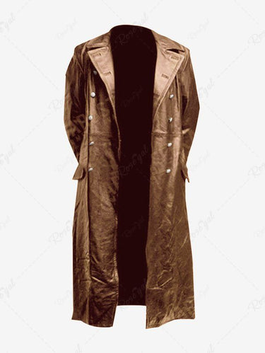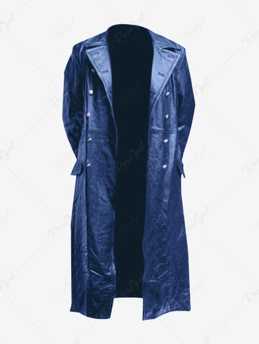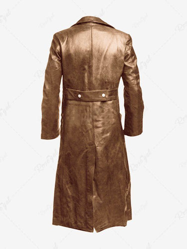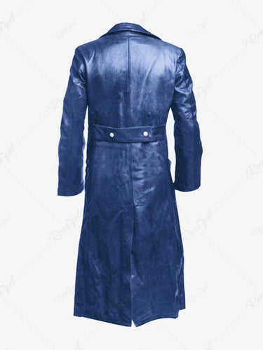 Gothic Turn-down Collar Double Breasted PU Panel Pockets Split Back Coat For Men