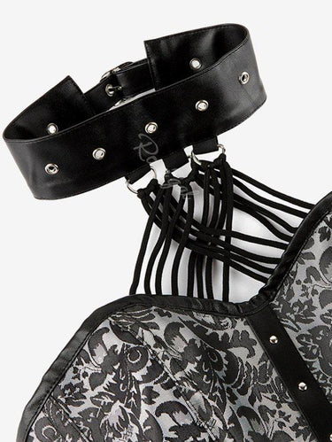 Gothic Halter Crisscross PU Leather Strappy Overbust Corset