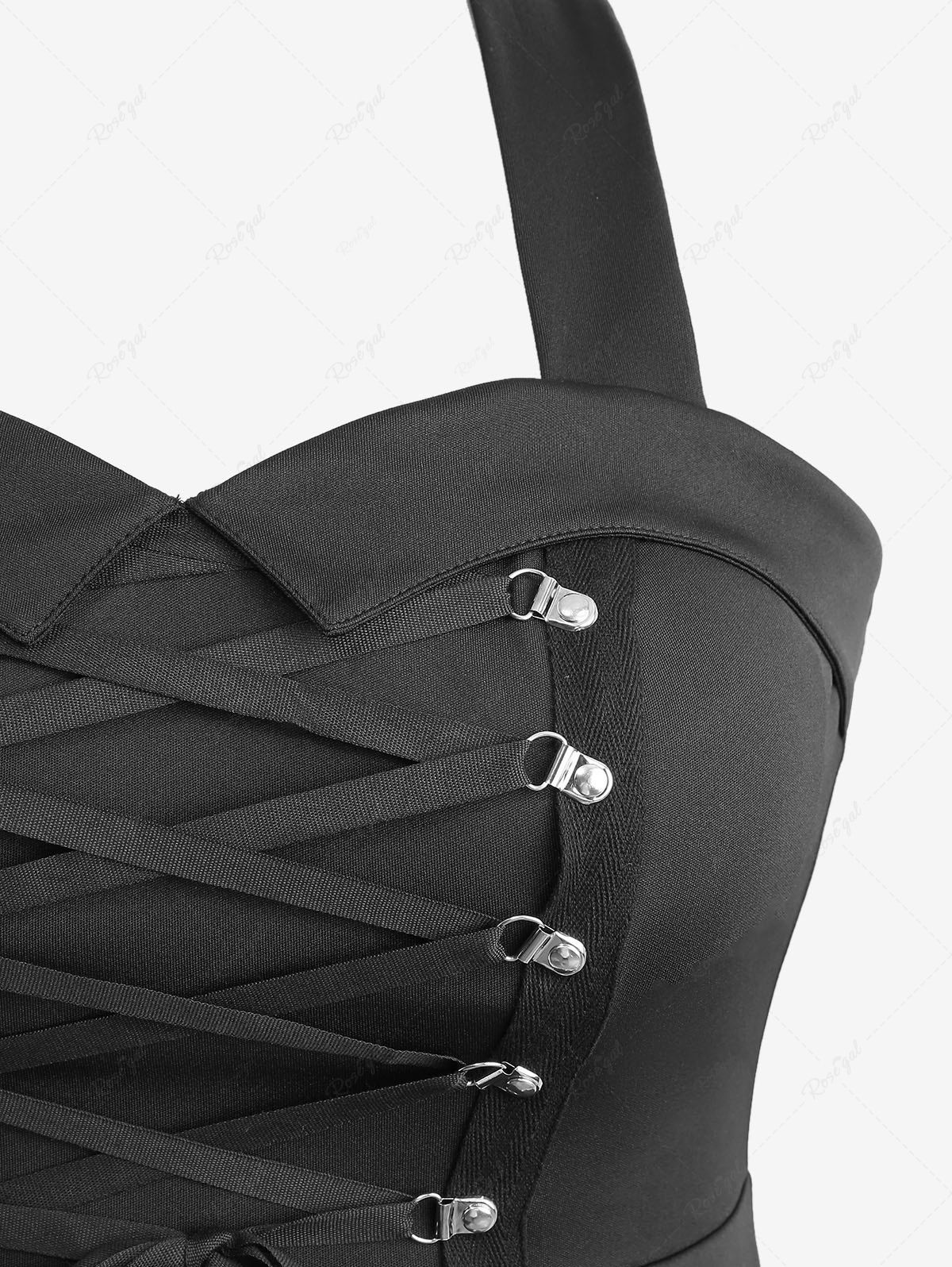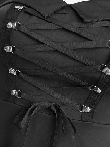 Gothic Turn-down Lace Up Halter Handkerchief Solid Dress