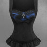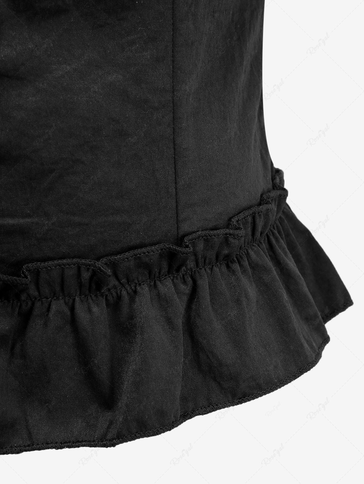Gothic Plaid Printed Button Ruffles Lace Up Back 2 in 1 Patchwork Top
