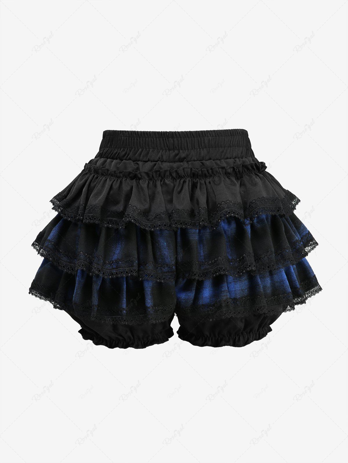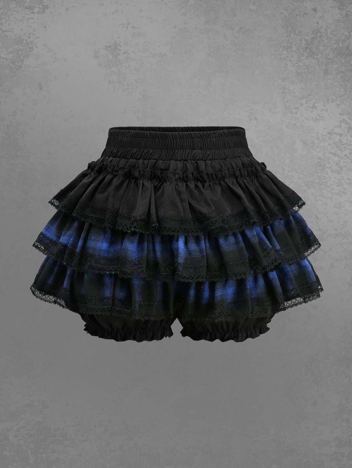 Gothic Plaid Printed Ruffles Lace Trim Layered Skirt