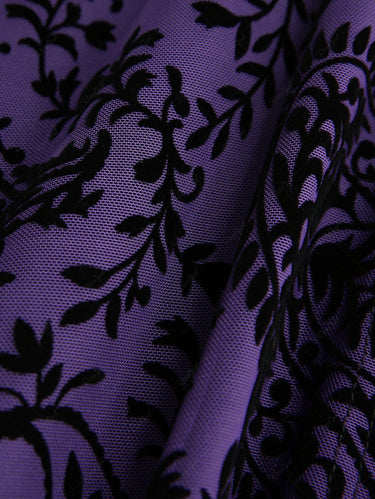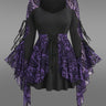 Gothic Plus Size Tied Flare Sleeves Floral Vine Paisley Mesh Flocking Lace Up Layered Patchwork 2 in 1 Halloween Blouse
