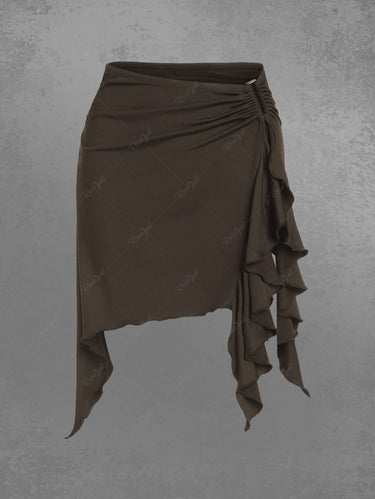 Gothic Flounces Metal Hardware Ruched Mini Skirt