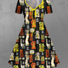 Gothic Plus Size Lucky Cat Word Print Cinched A Line Dress