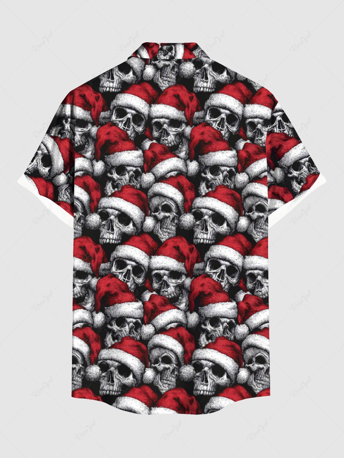 Gothic Plus Size Christmas Hat Skull Print Button Pocket Shirt For Men