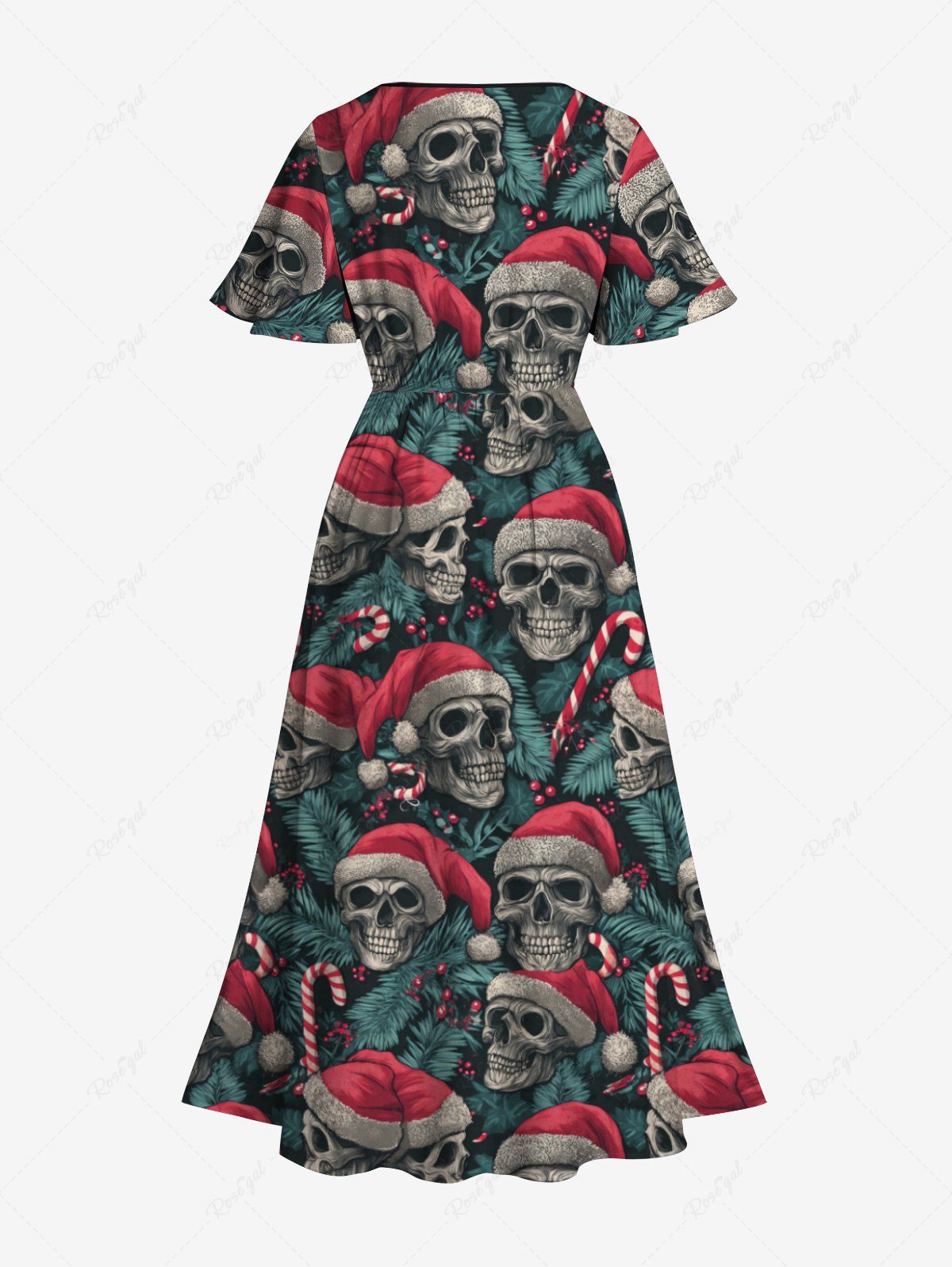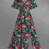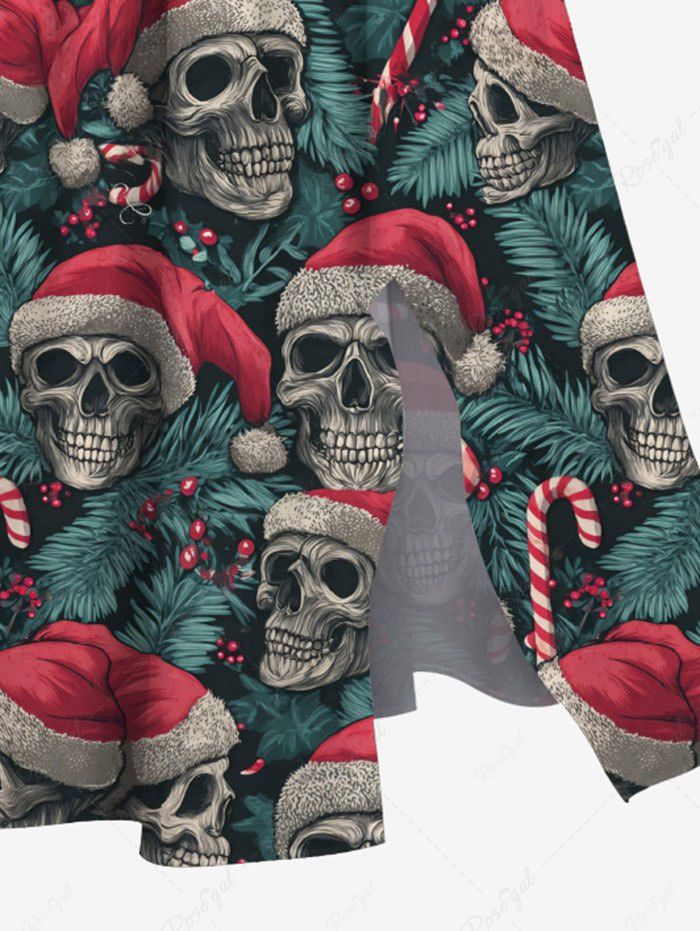 Gothic Plus Size Christmas Skull Santa Claus Holly Fruit Candy Tropical Leaf Print Split Midi Dress