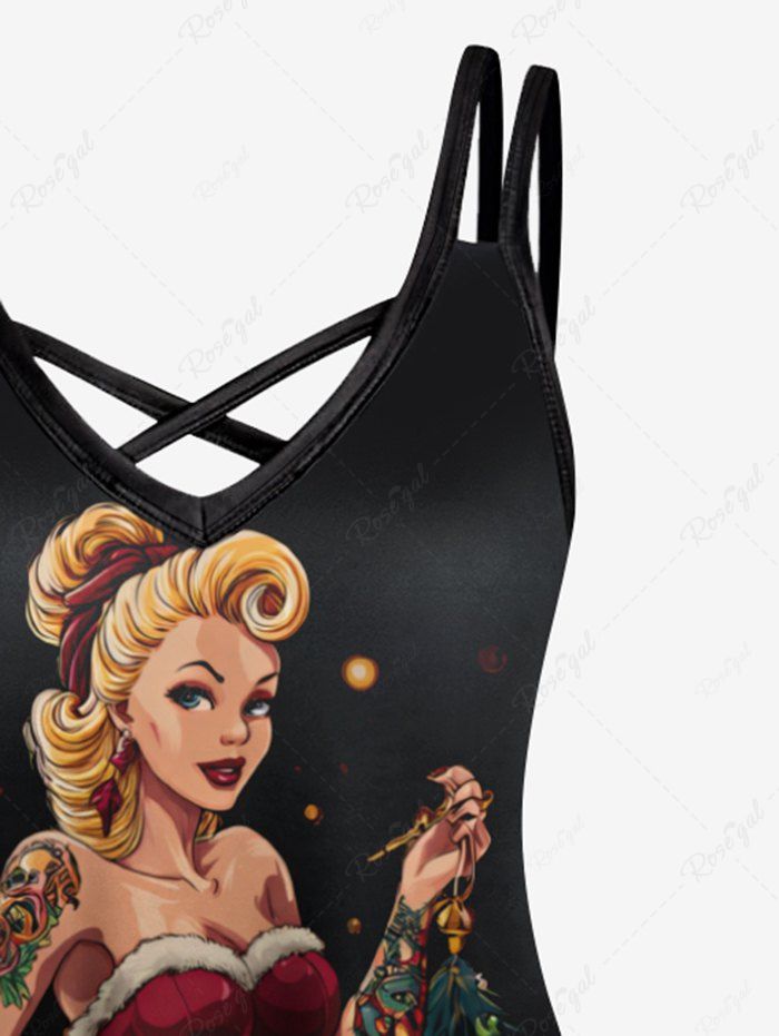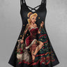 Gothic Plus Size Christmas Tree Ball Lady Elf Print Crisscross Cami Dress