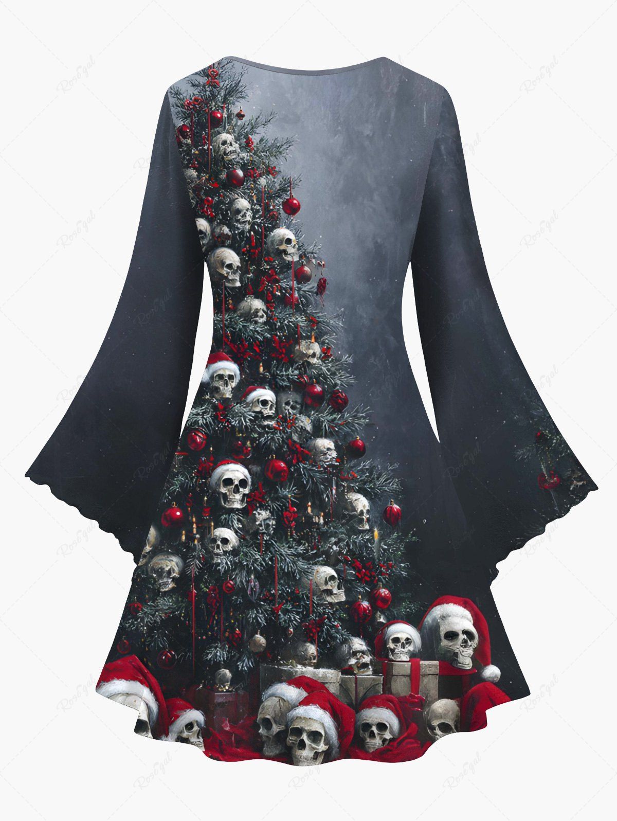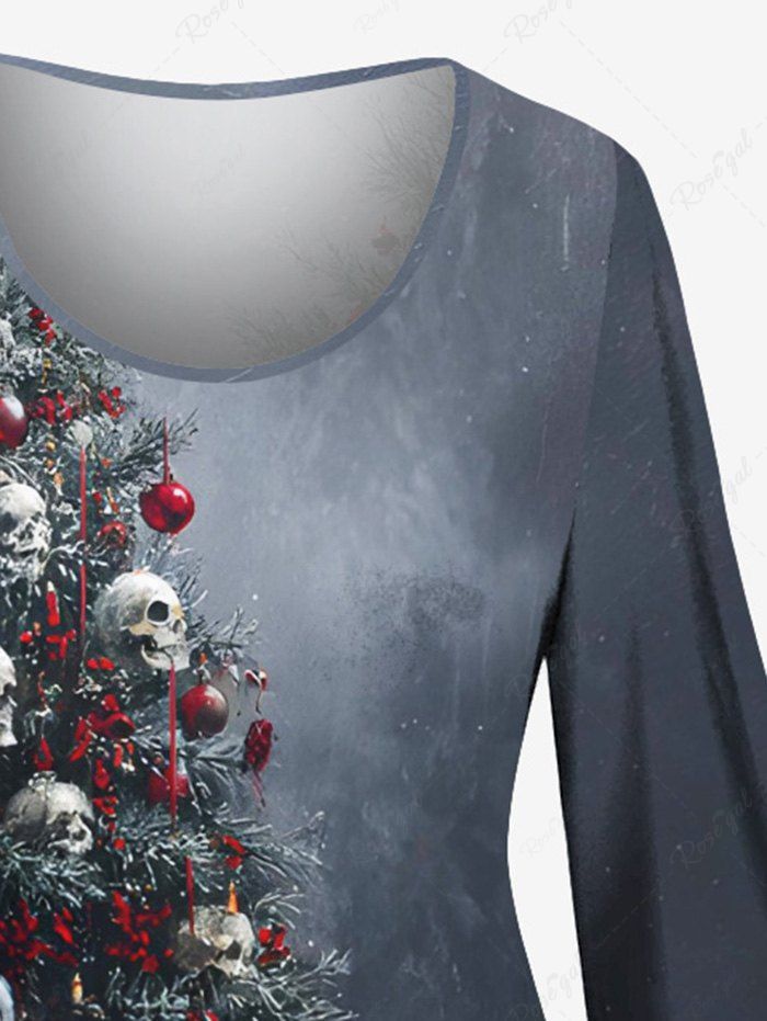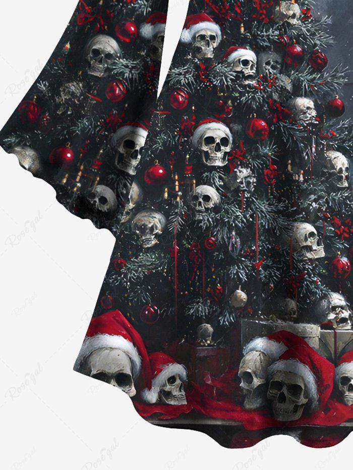 Gothic Plus Size Christmas Tree Hat Skull Gift Print A Line Dress
