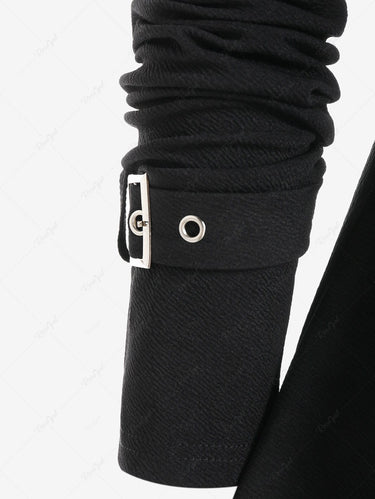 Gothic Plus Size Buckles Zipper Fly Two Tone Long Sleeves Long Sleeve Tops