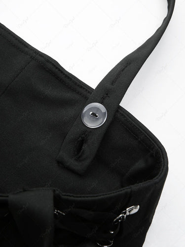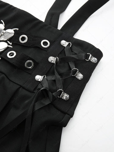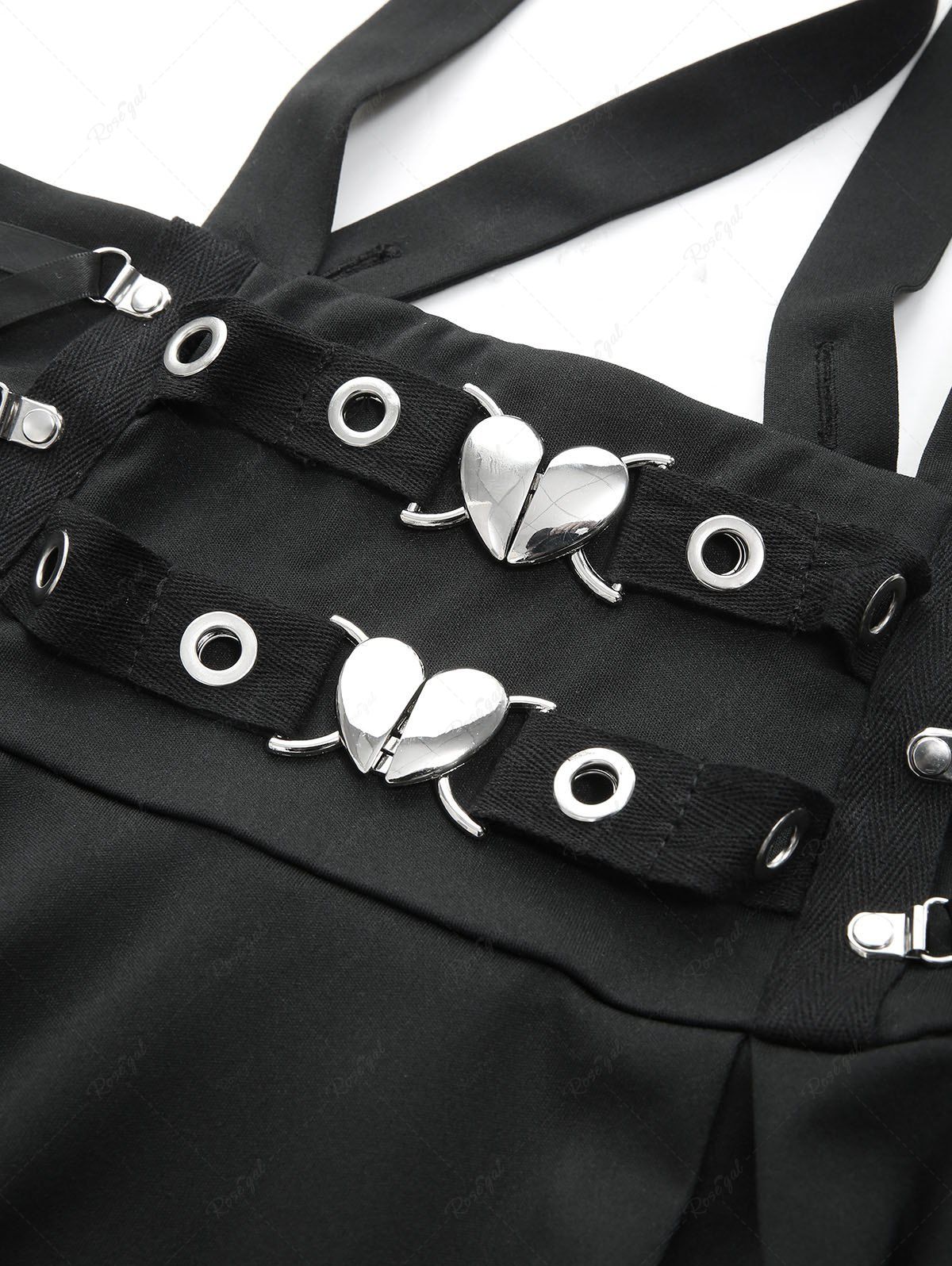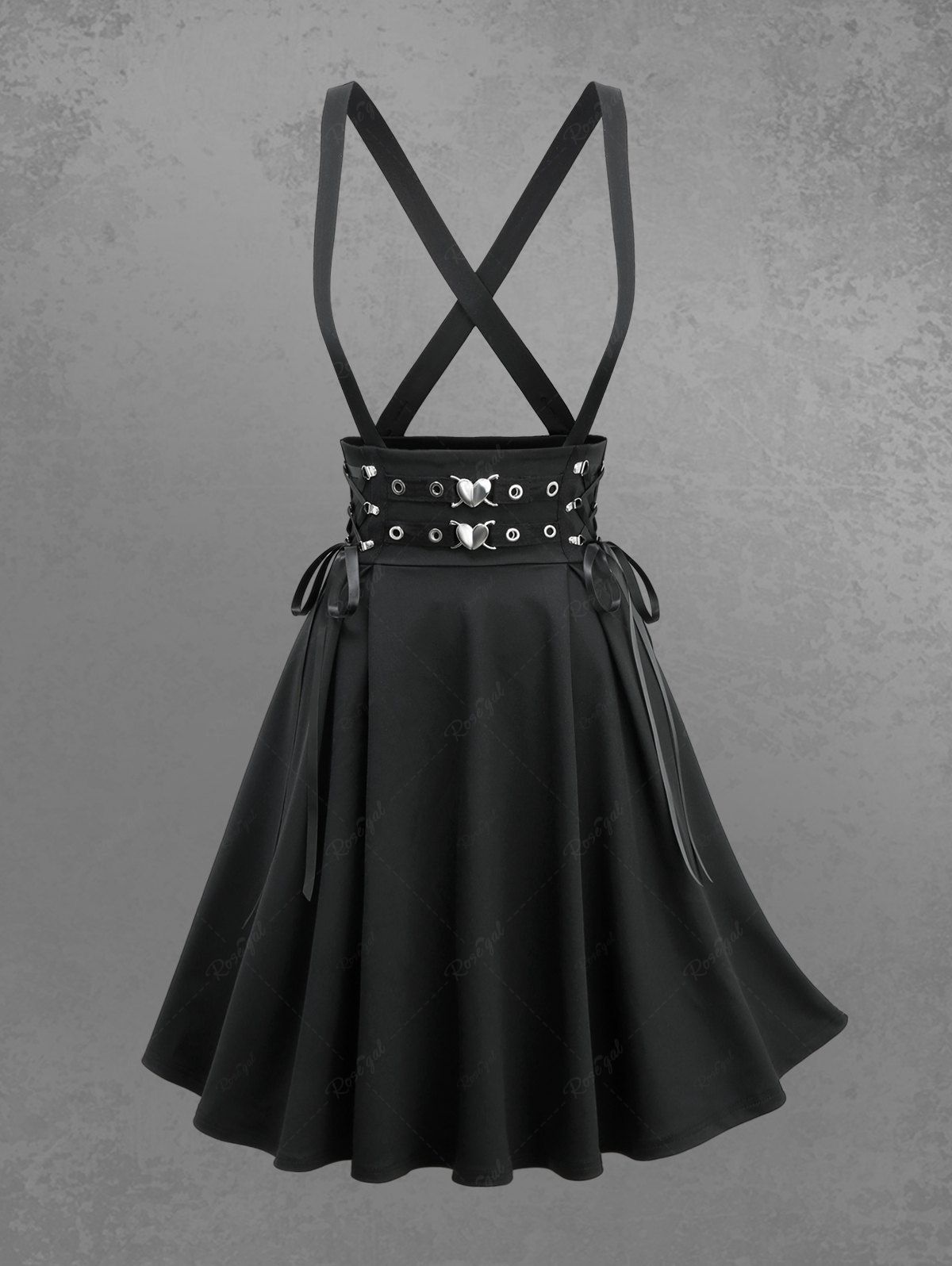 Gothic Heart Buckle Decor Lace Up Grommet Crisscross A Line Suspender Skirt
