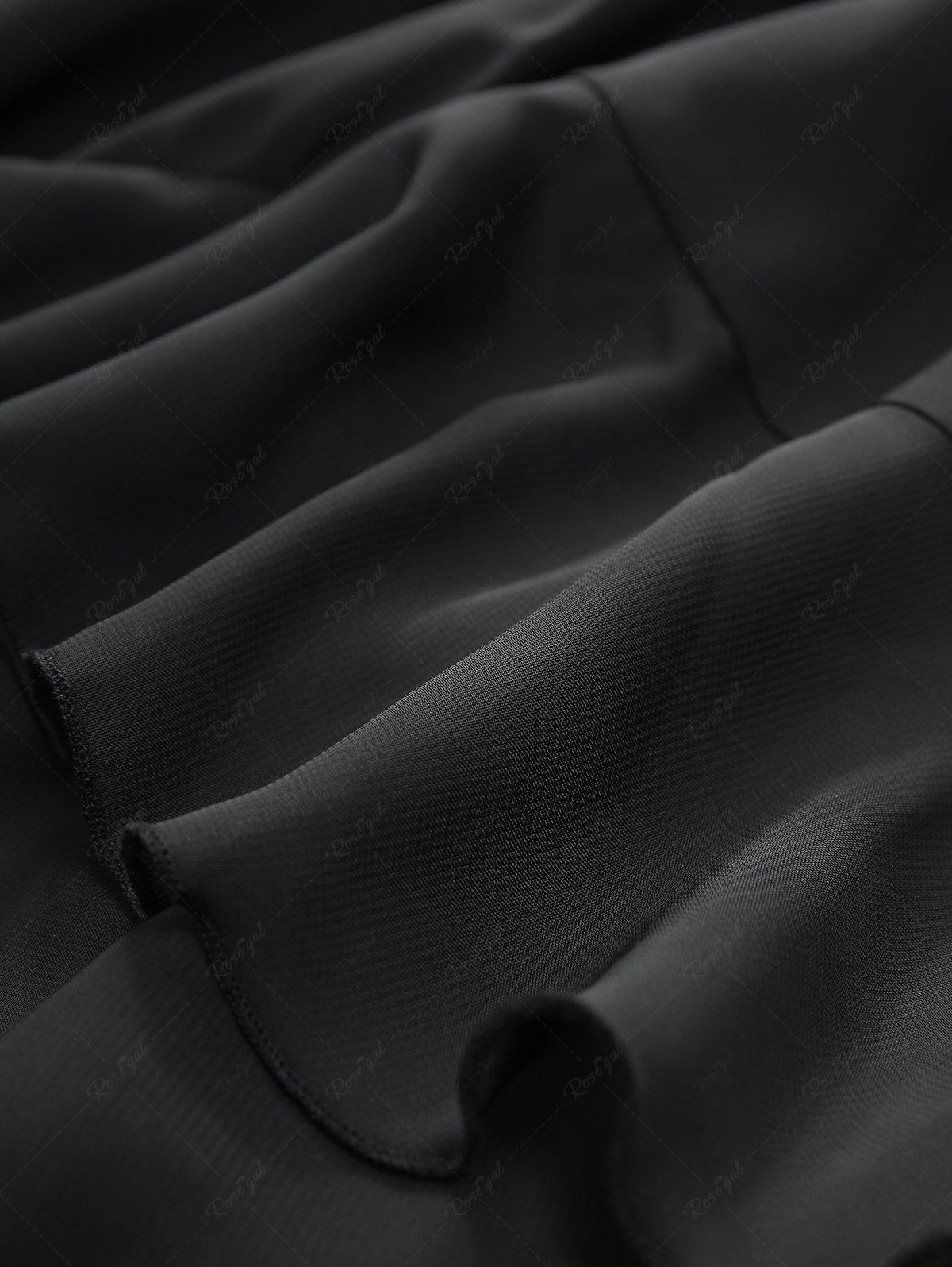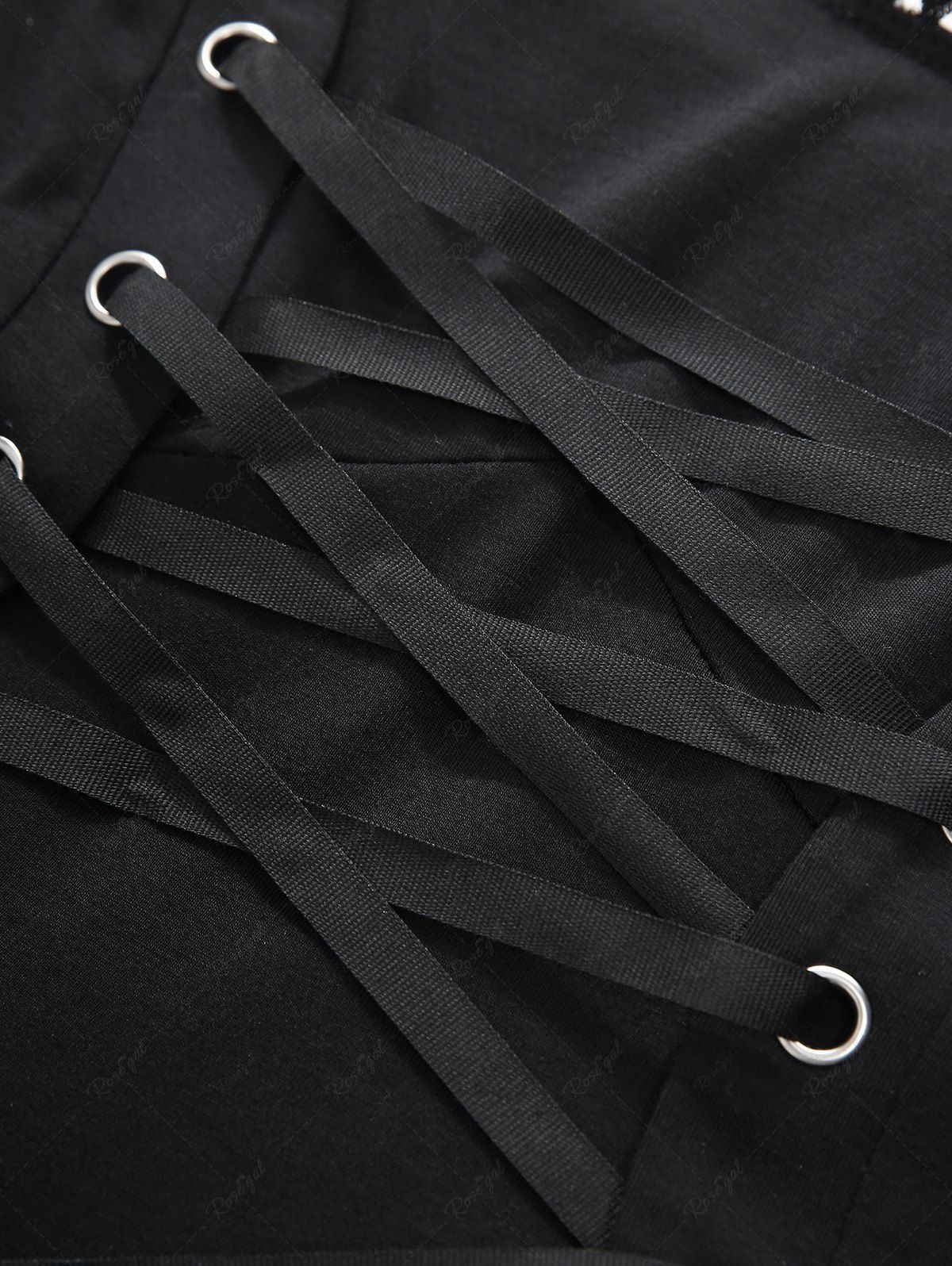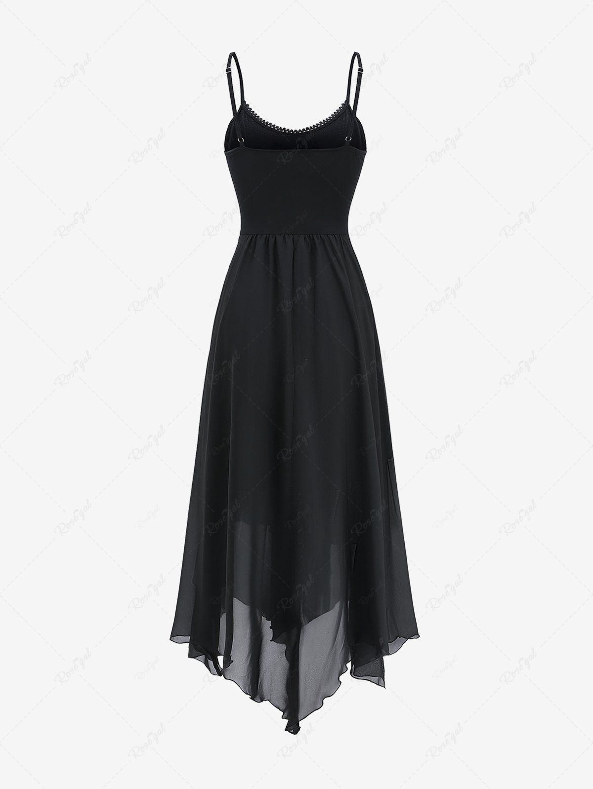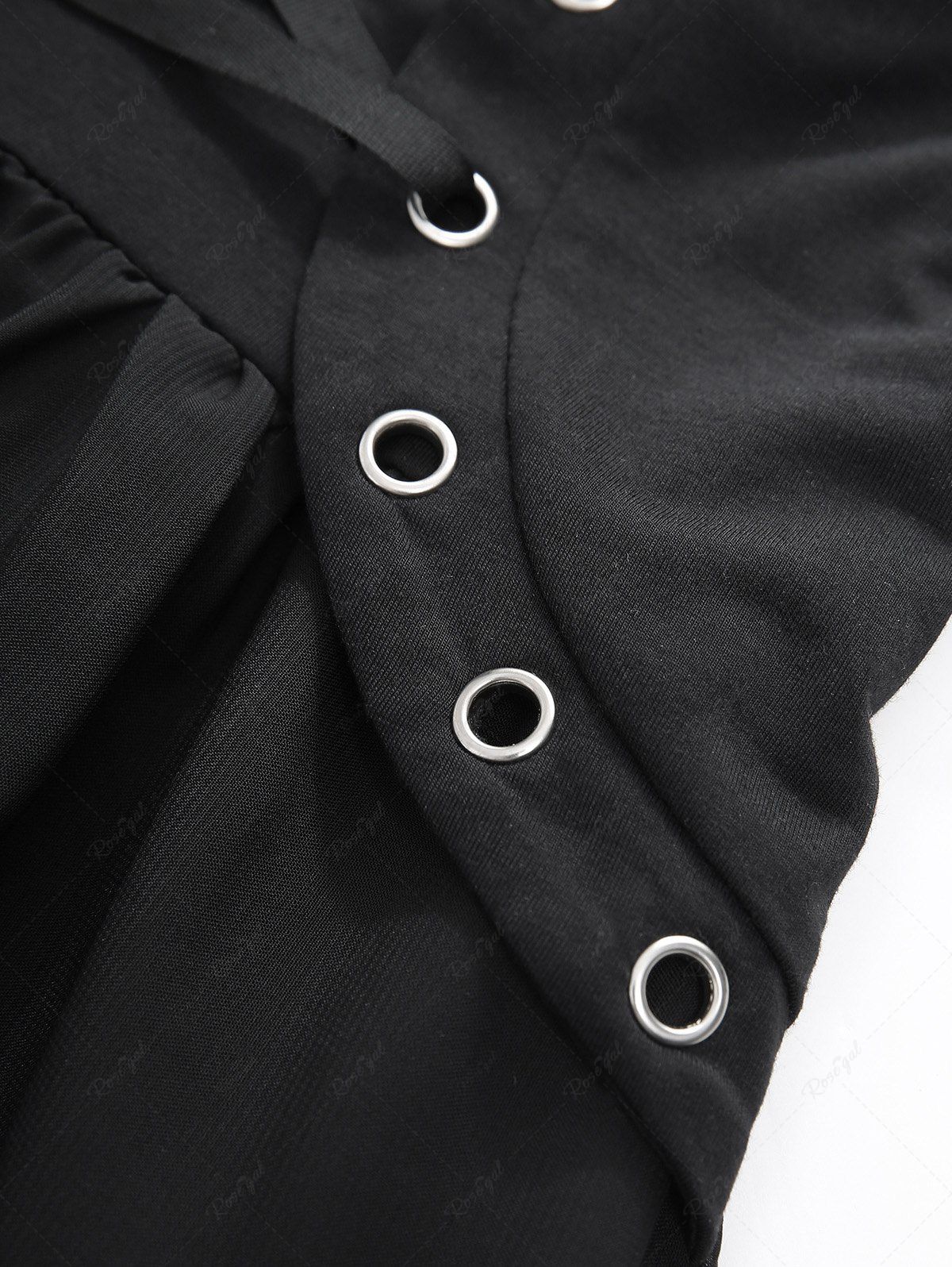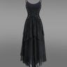 Gothic Lace Up Layered Grommet Solid A Line Backless Chiffon Cami Dress
