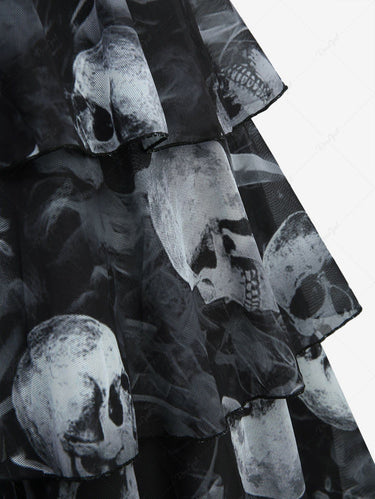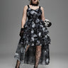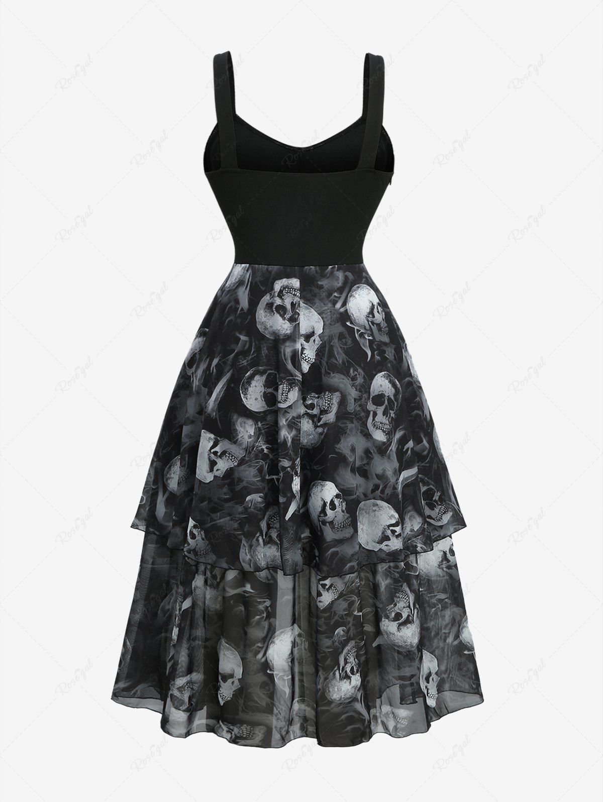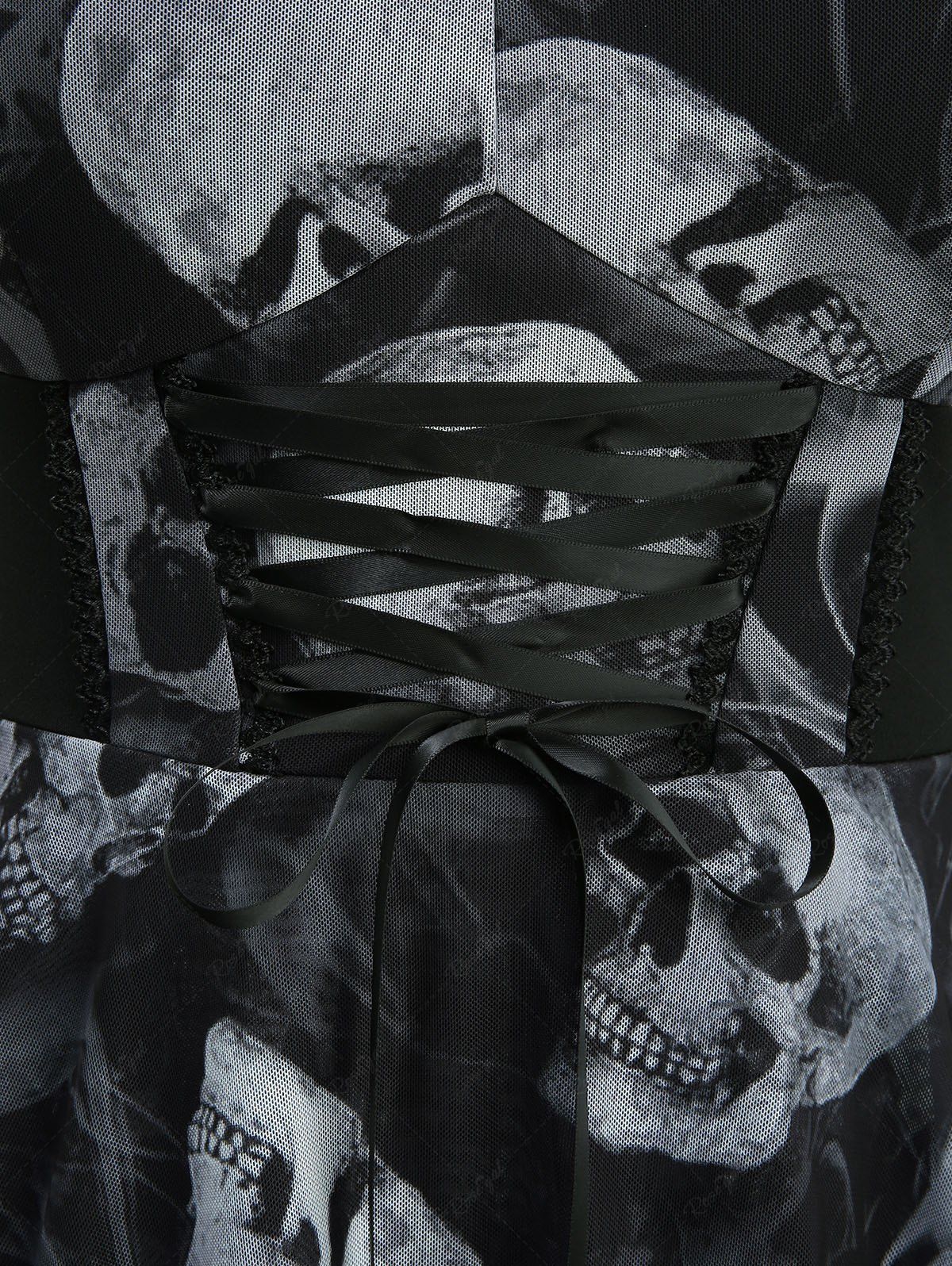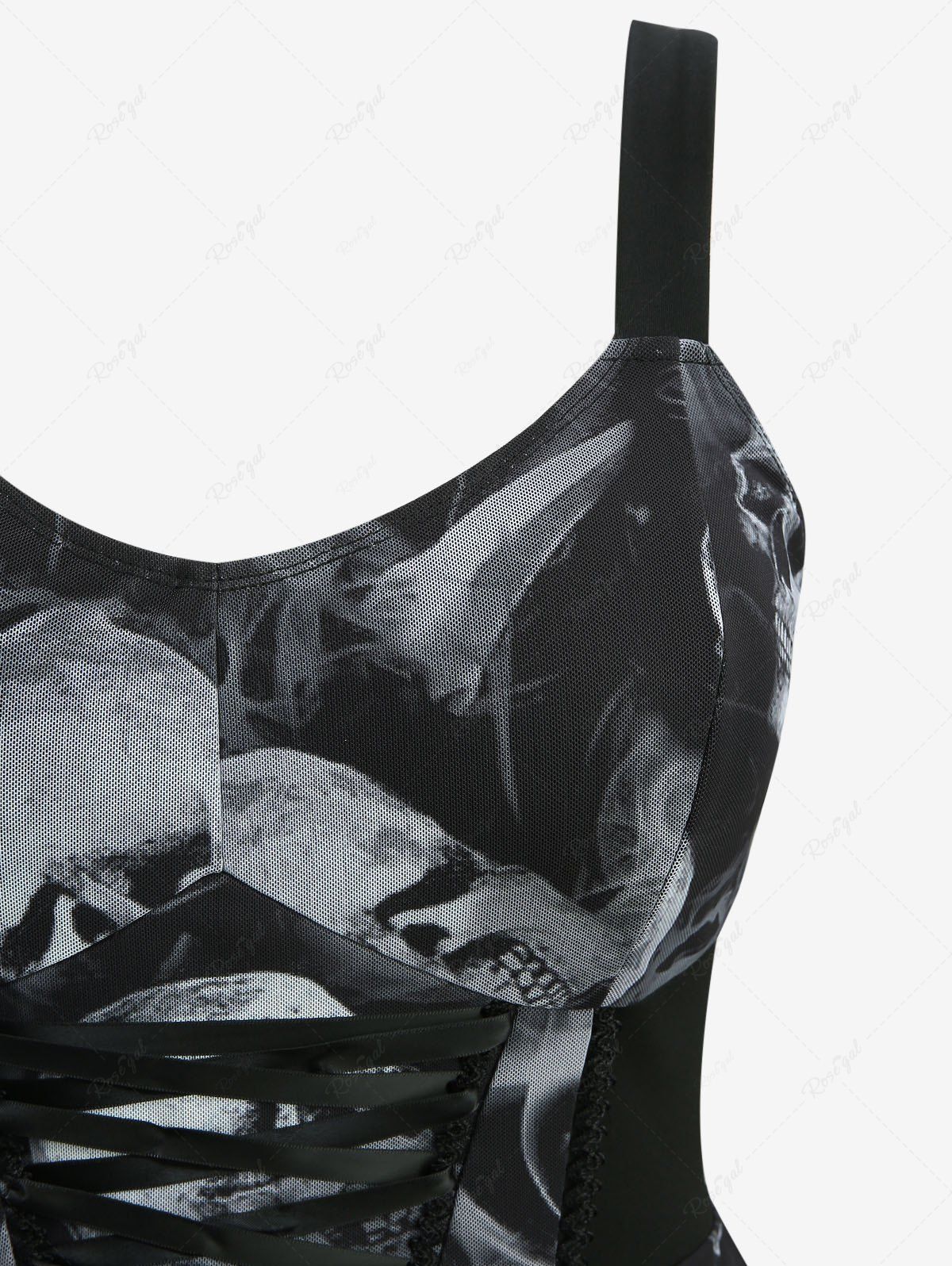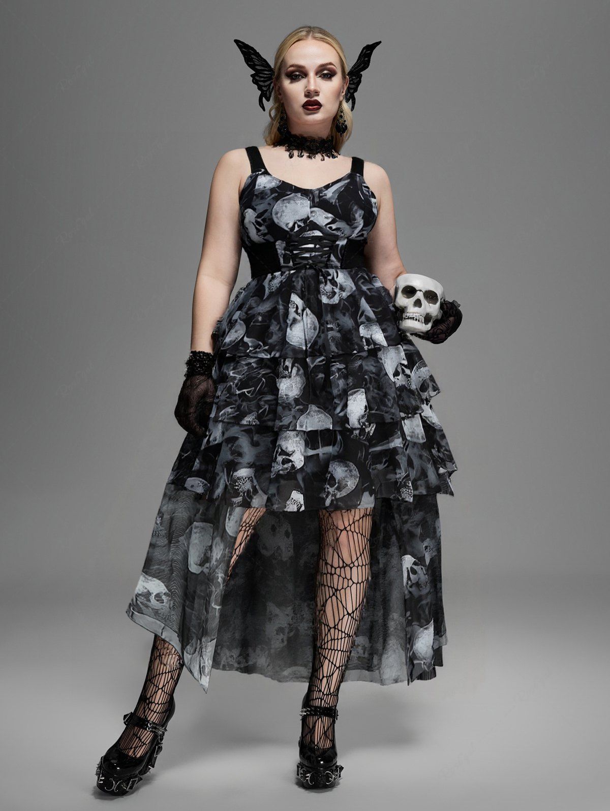 Gothic Plus Size Ombre Skull Smoke Print Mesh Lace Up Layered Asymmetric A Line Tank Dress