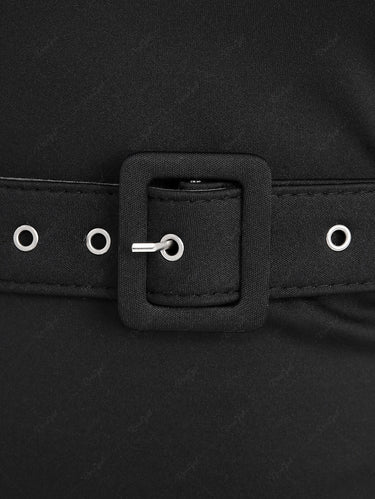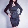 Gothic Plus Size Applique Solid Buckle Grommet Belted Long Sleeves Bodycon Dress(3 Days Delivery)