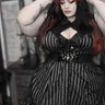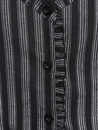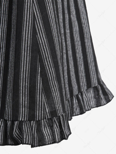 Gothic Plus Size Turn-down Collar Striped Print Flounce Trim Full Buttons Cutout Patchwork Panel Sleeveless 1950s Vintage Dress