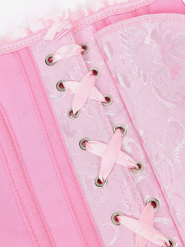 Gothic Plus Size Frilled Lace-up Boning Overbust Brocade Corset