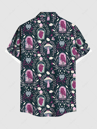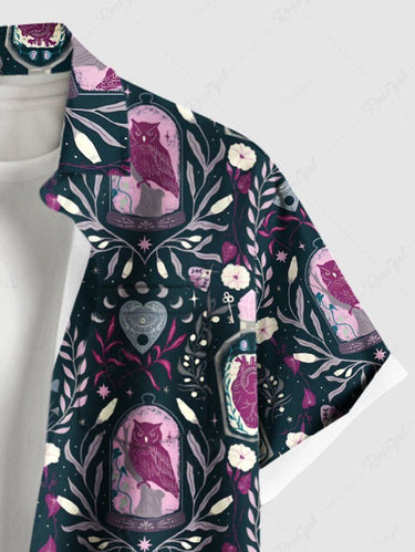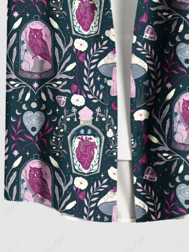 Gothic Plus Size Owl Mushroom Floral Branch Print Button Pocket Shirt For Men