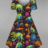 💗Stephanie Loves💗 Gothic Plus Size Colorful Skull Pumpkin Dinosaur Sailor Print Halloween Cinched Dress