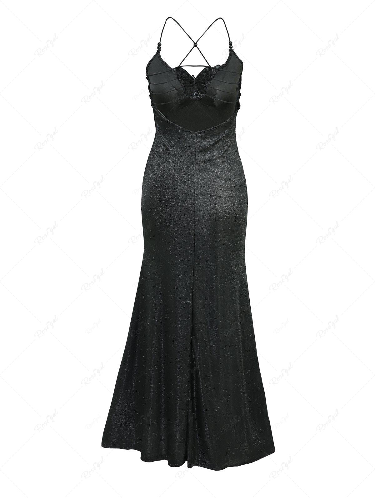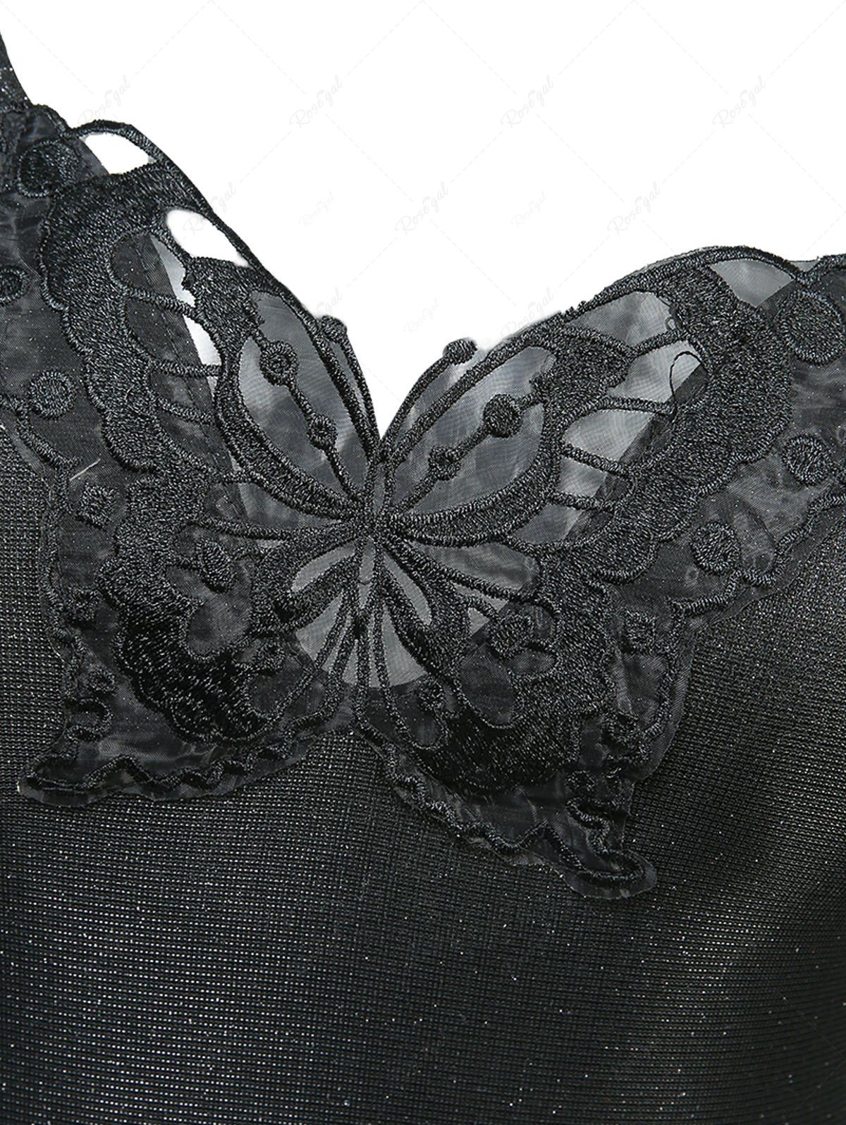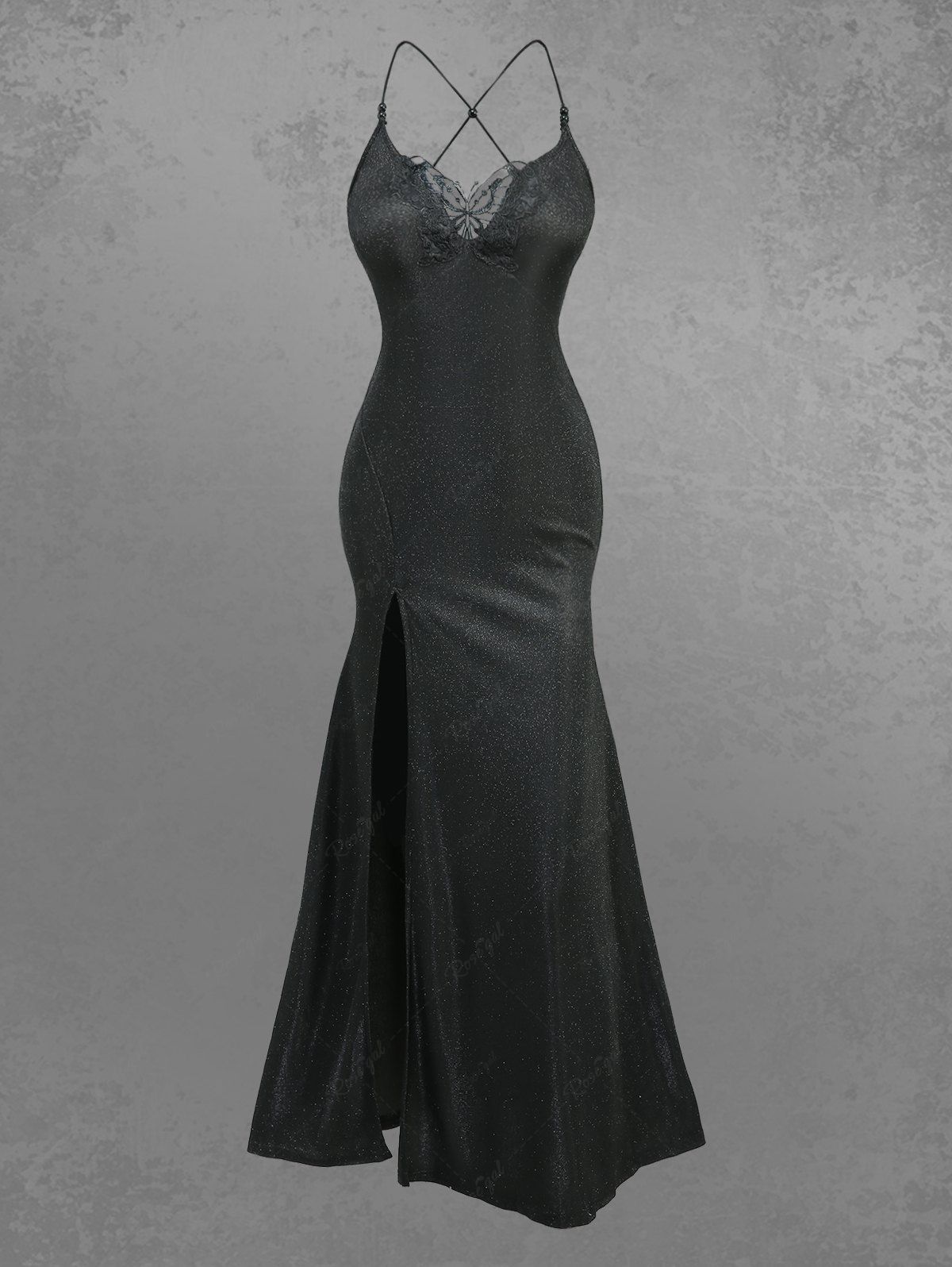 Butterfly Appliques Panel Crisscross Strap Split Cami Dress