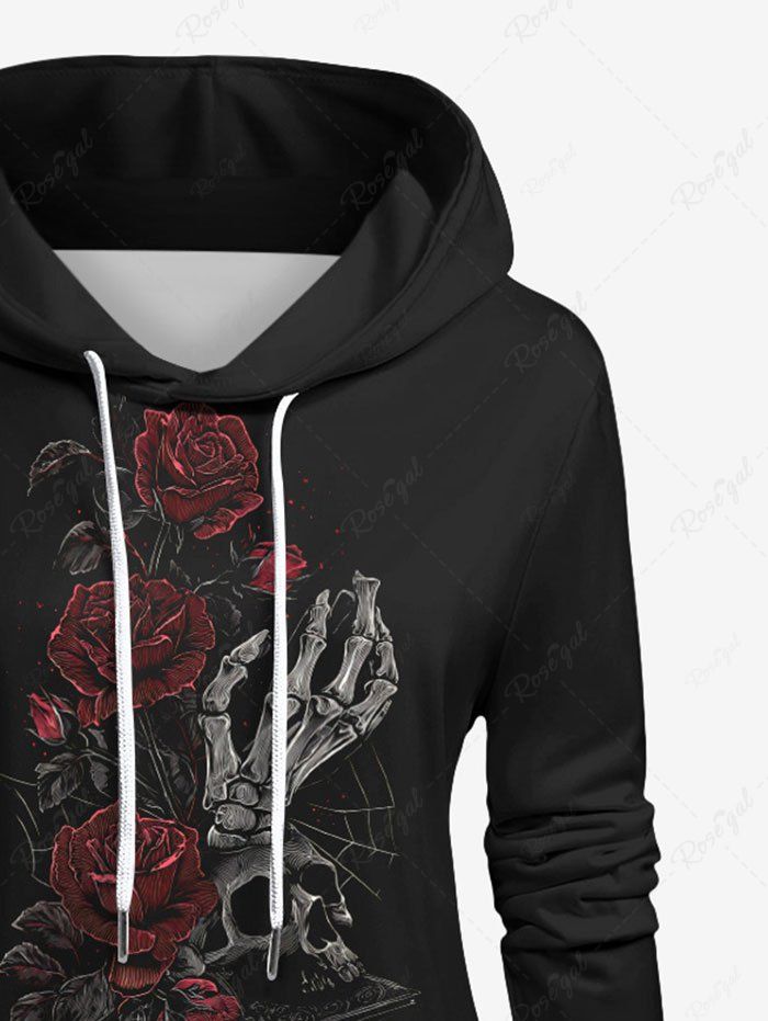 Gothic Plus Size Skull Skeleton Rose Flower Book Print Pullover Long Sleeves Hoodie