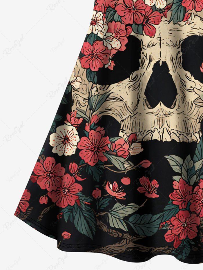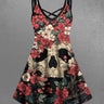 Gothic Plus Size Skull Tree Flower Print Crisscross Strappy A Line Cami Dress