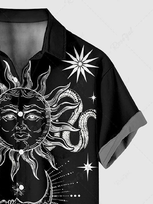 Gothic Plus Size Sun Moon Star Octopus Print Button Pocket Shirt For Men