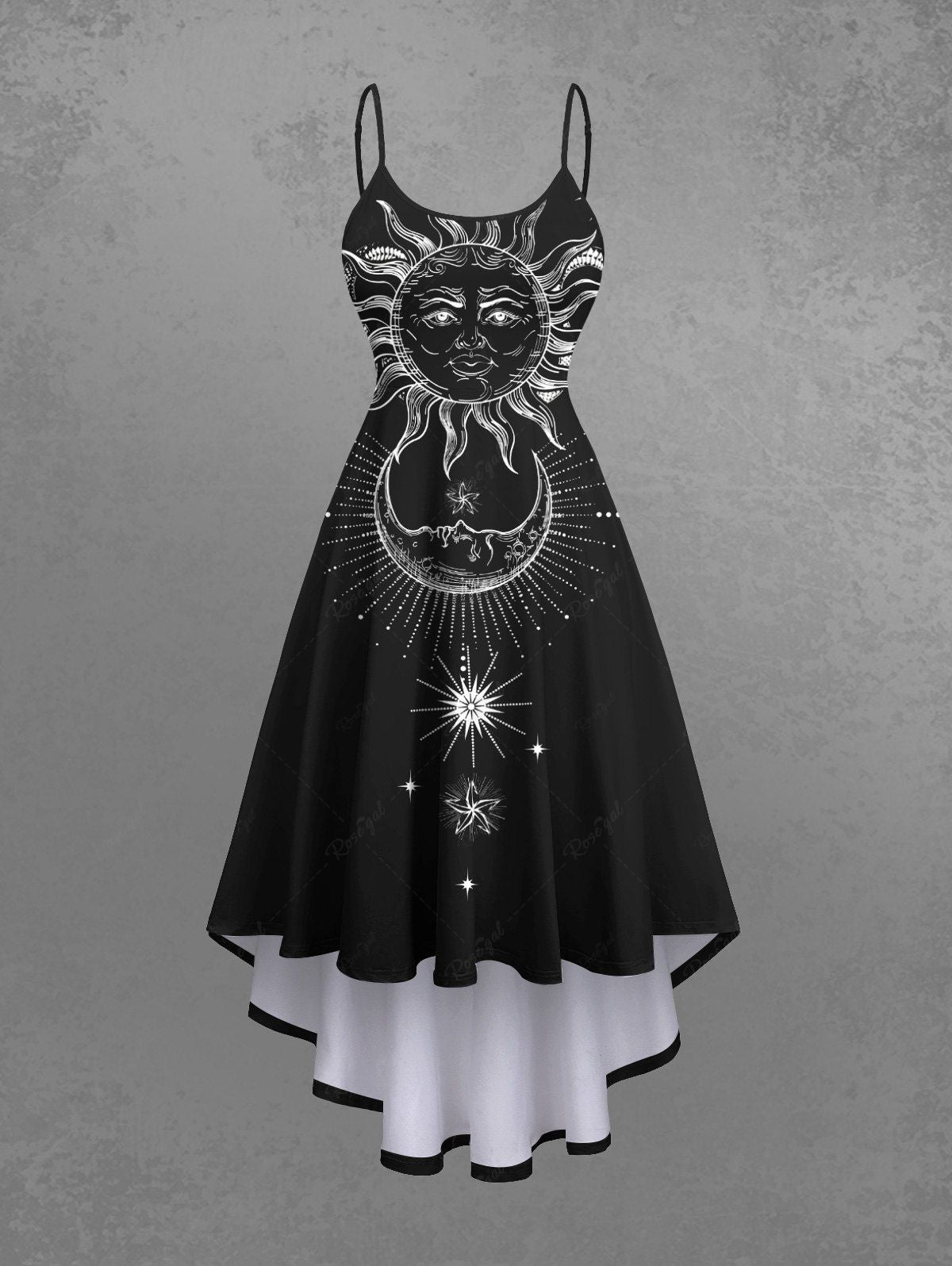 Gothic Plus Size Sun Moon Star Octopus Print High Low Asymmetric Cami Dress