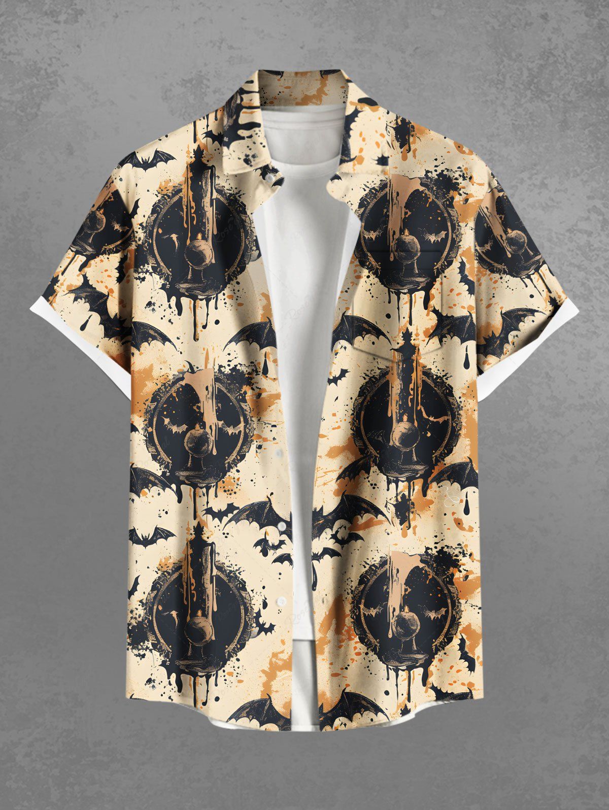 Gothic Plus Size Halloween Bat Paint Splatter Print Buttons Pocket Shirt For Men