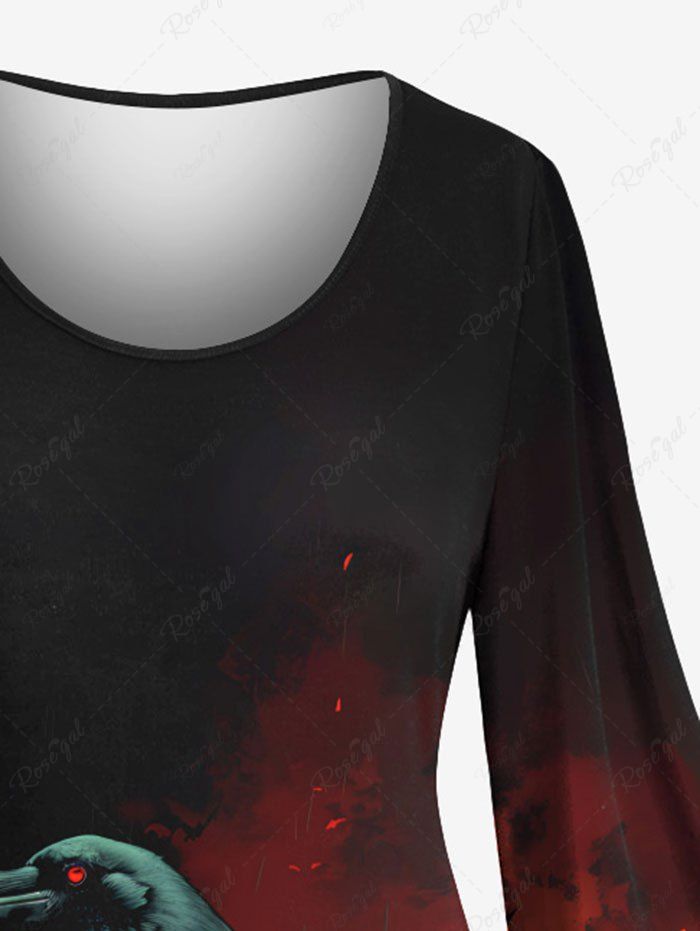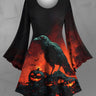 Gothic Plus Size Pumpkin Crow Bat Fire Print Halloween A Line Dress