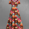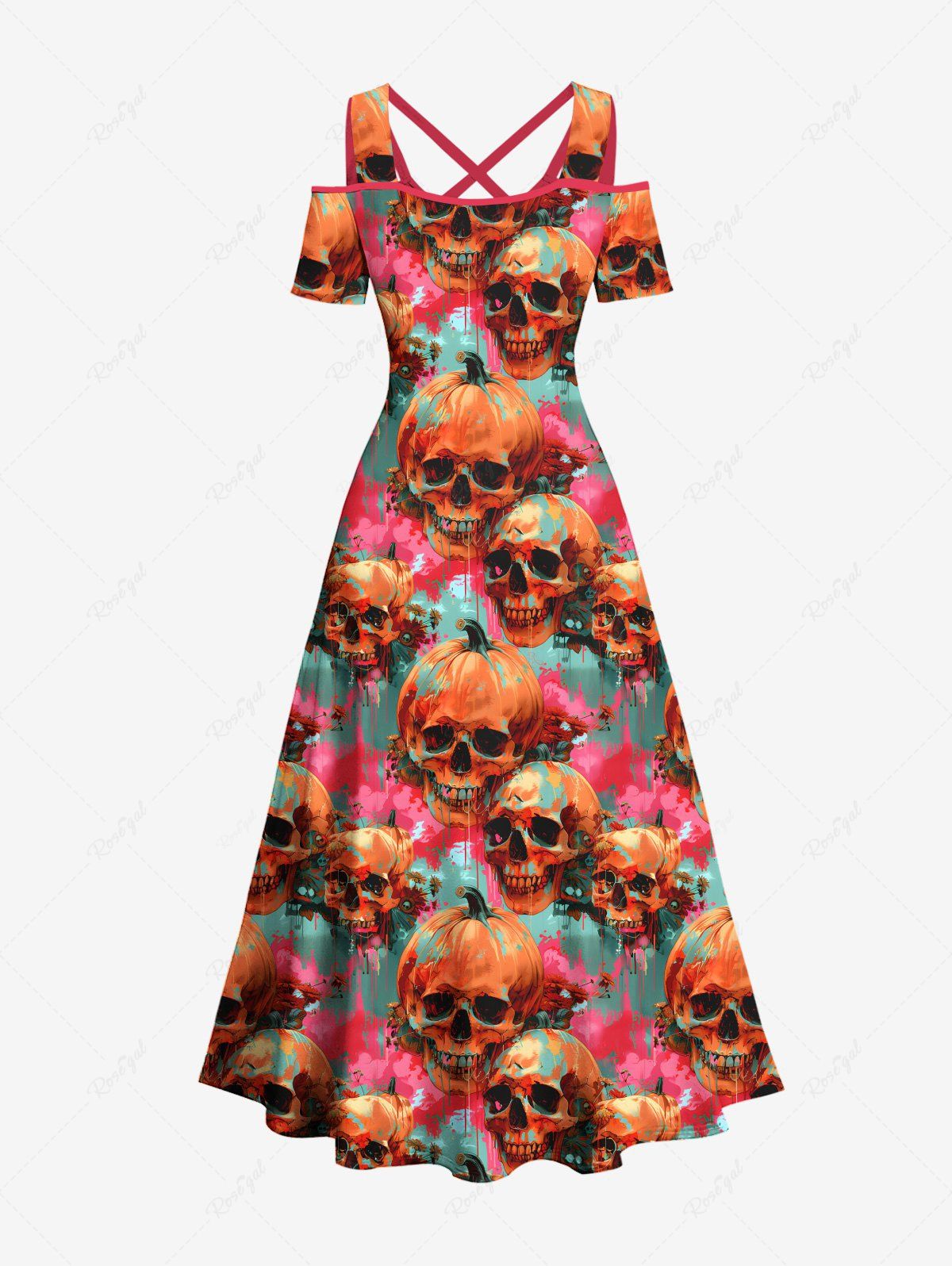 Gothic Plus Size Skull Pumpkin Tie Dye Print Halloween Cold Shoulder Crisscross A Line Maxi Dress