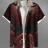 Gothic Plus Size Flower Moon Bat Ombre Print Button Pocket Shirt For Men