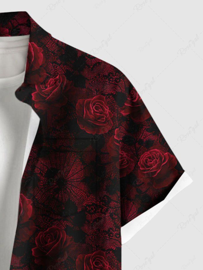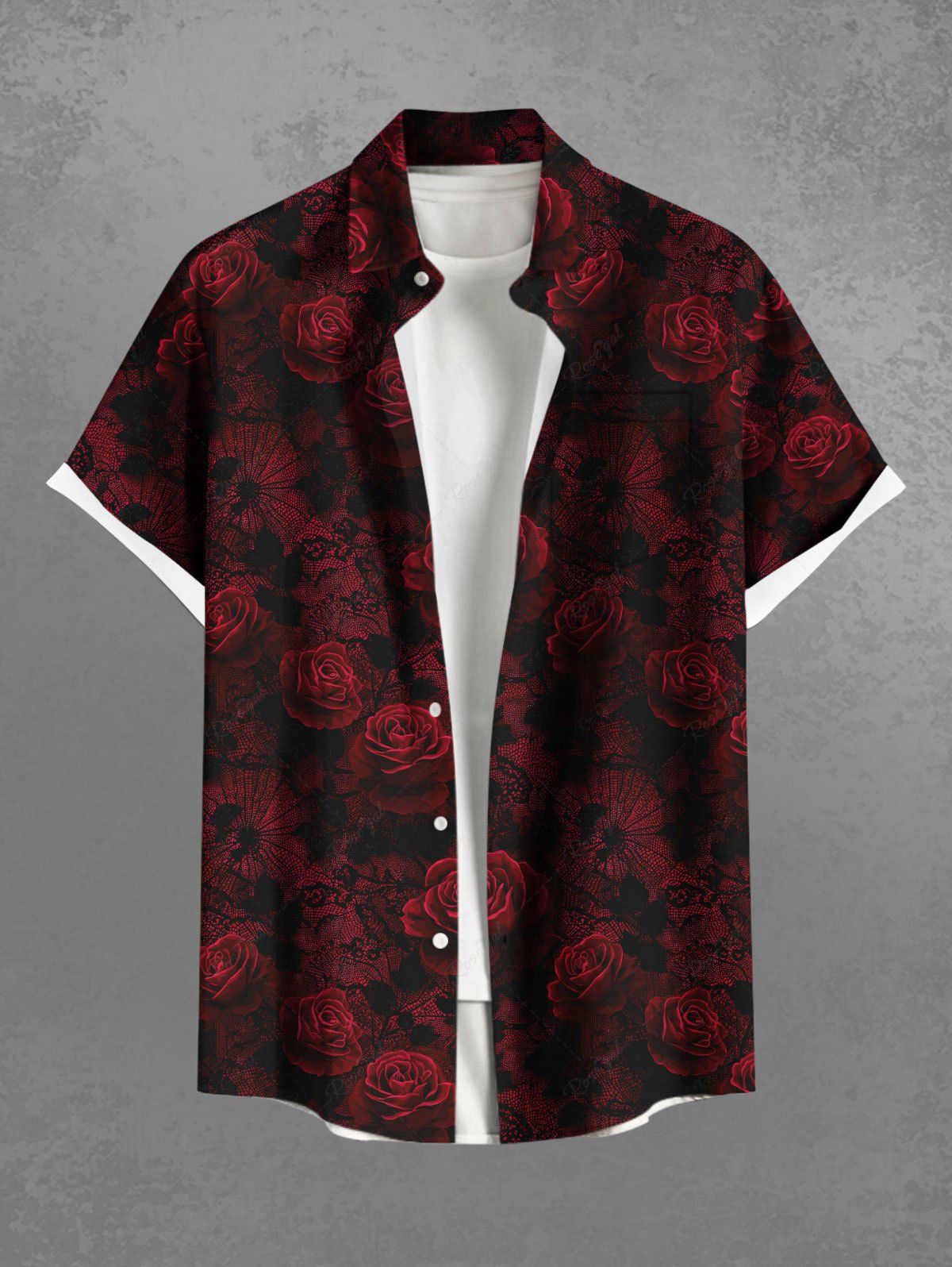Gothic Plus Size Ombre Rose Flower Print Button Pocket Shirt For Men