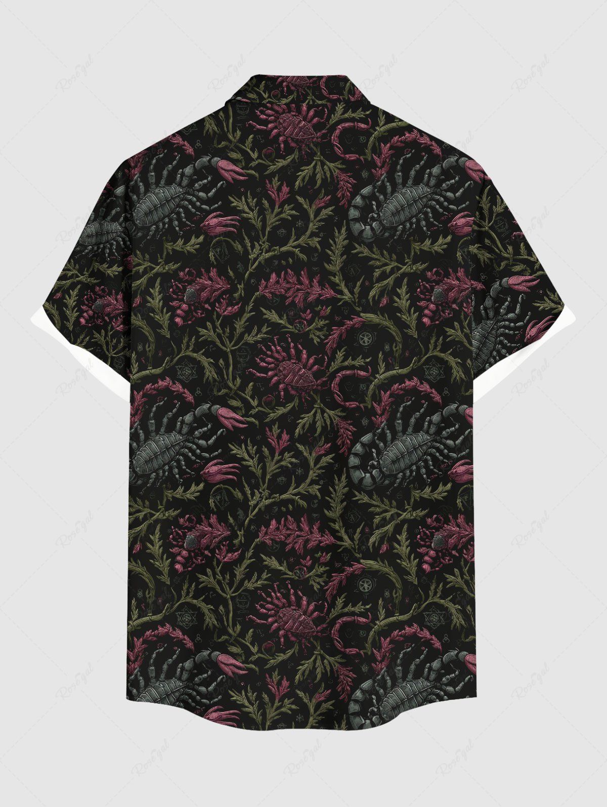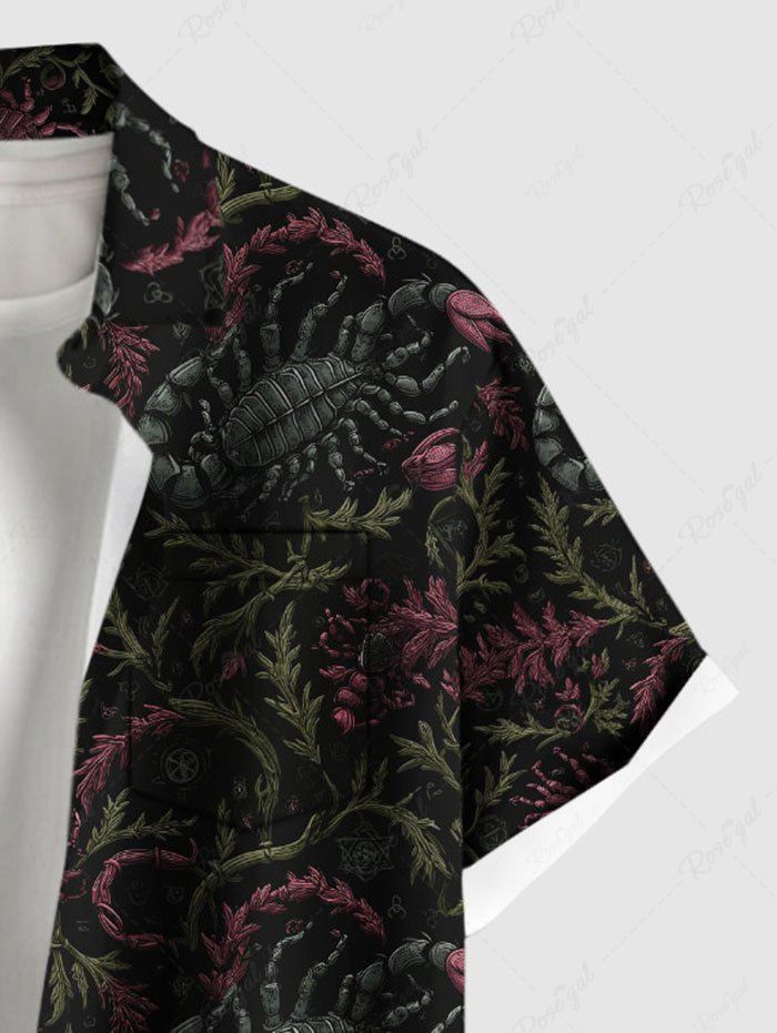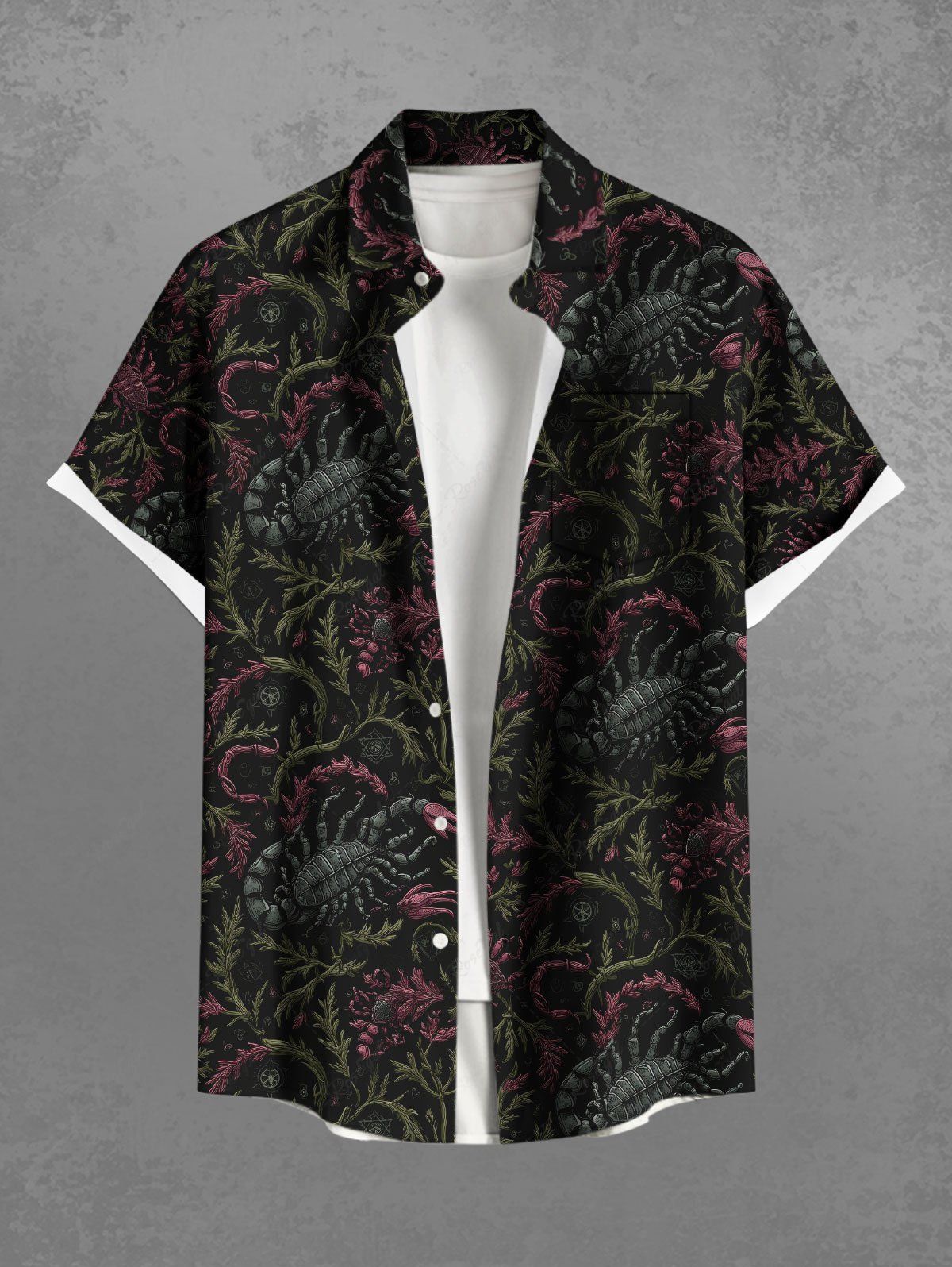 Gothic Plus Size Scorpion Grass Print Button Pocket Shirt For Men