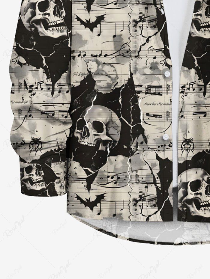 Gothic Plus Size Skull Music Symbol Print Button Long Sleeves Shirt For Men