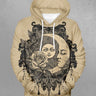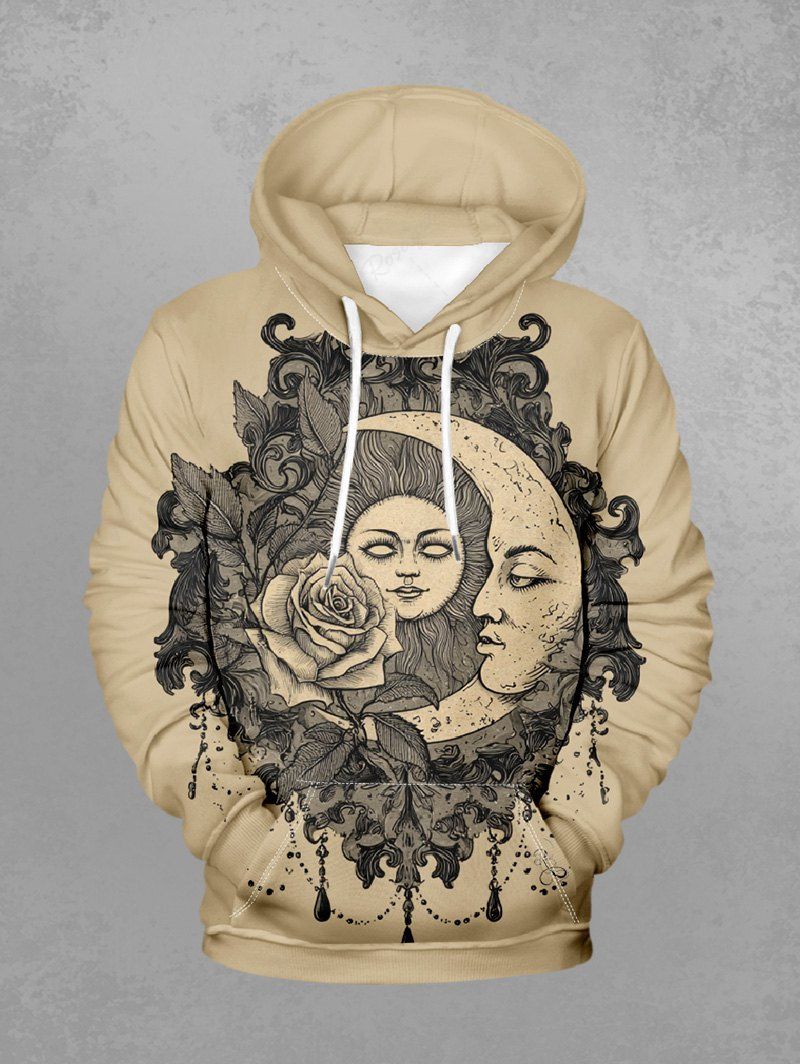 Gothic Plus Size Sun Moon Face Rose Flower Print Pullover Long Sleeves Hoodie For Men