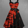Gothic Plus Size Ink Painting Bat Castle Print Halloween Costume Button A Line Dress with Removable Belt