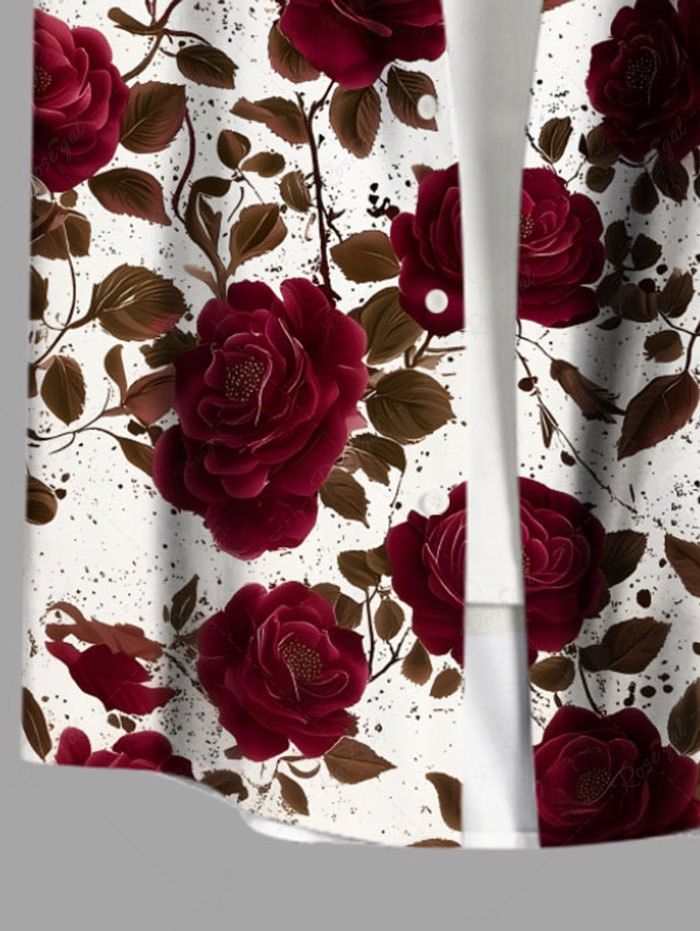 Gothic Plus Size Rose Flower Leaf Painting Splatter Print Button Pocket Shirt For Men