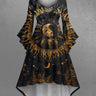 Gothic Plus Size Sun Moon Divination Symbols Print Ruched High Low Asymmetric Dress