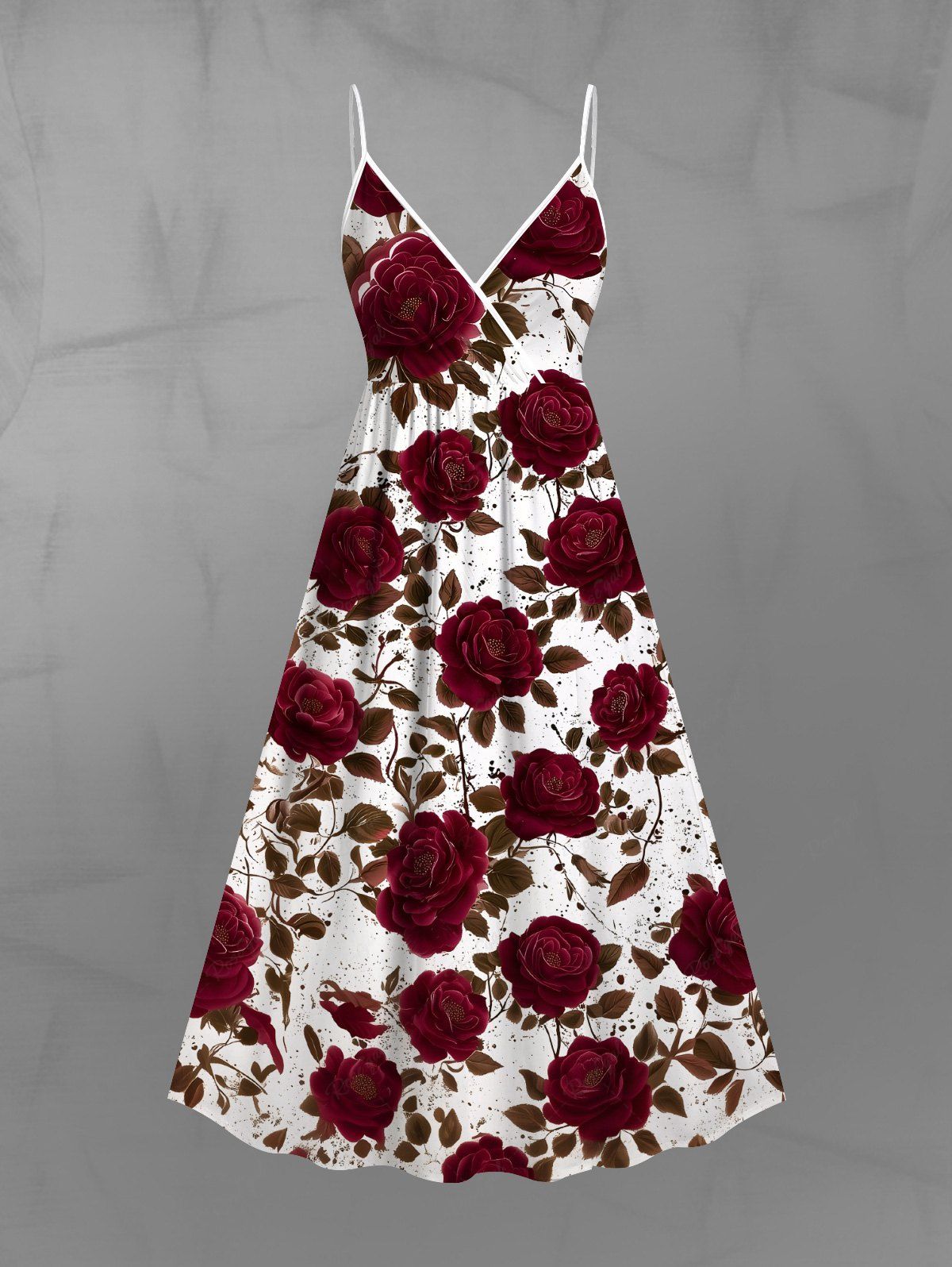 Quick viewGothic Plus Size Rose Flower Leaf Painting Splatter Print Surplice A Line Cami Dress$49.99$45.99 /Choose options Save 15%
