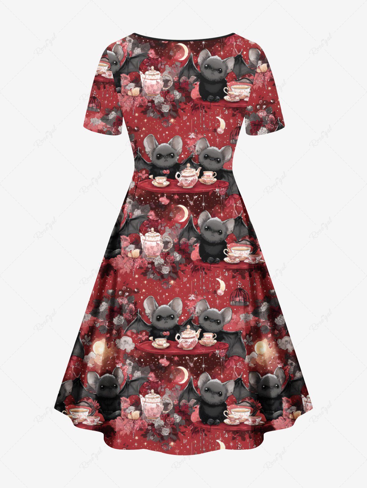Gothic Plus Size Bat Moon Star Teapot Print Cinched Dress