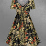 Gothic Plus Size Skull Fish Rose Flower Leaf Branch Print Halloween Costume Cinched A Line Dress