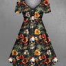 Gothic Plus Size Skull Tropical Leaf Hibiscus Flower Print Hawaii Cinched A Line Dress