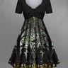 Gothic Plus Size Tree Branch Bird Fence Wizard Print Halloween Costume Cinched A Line Dress