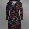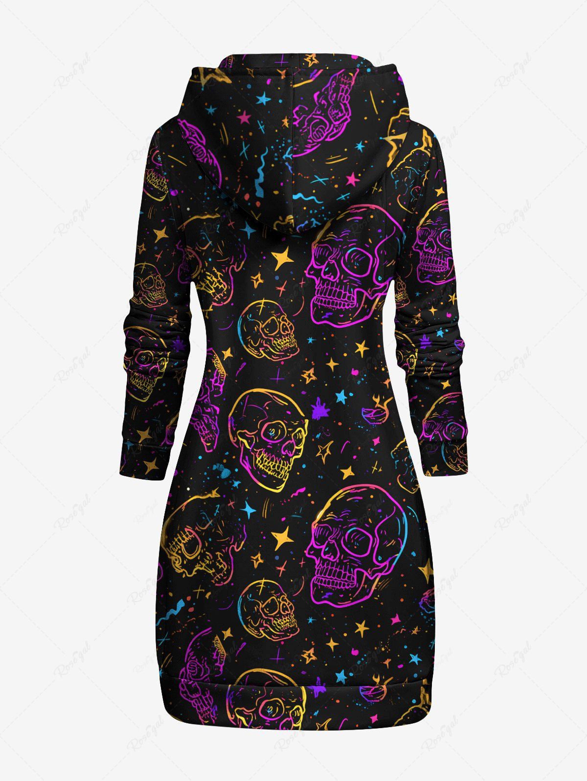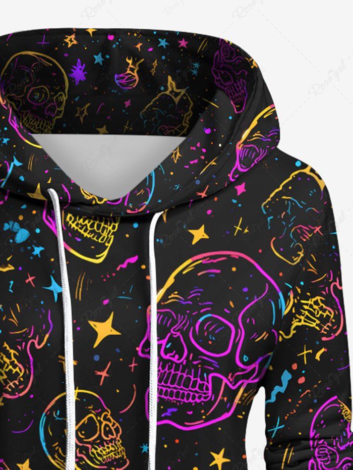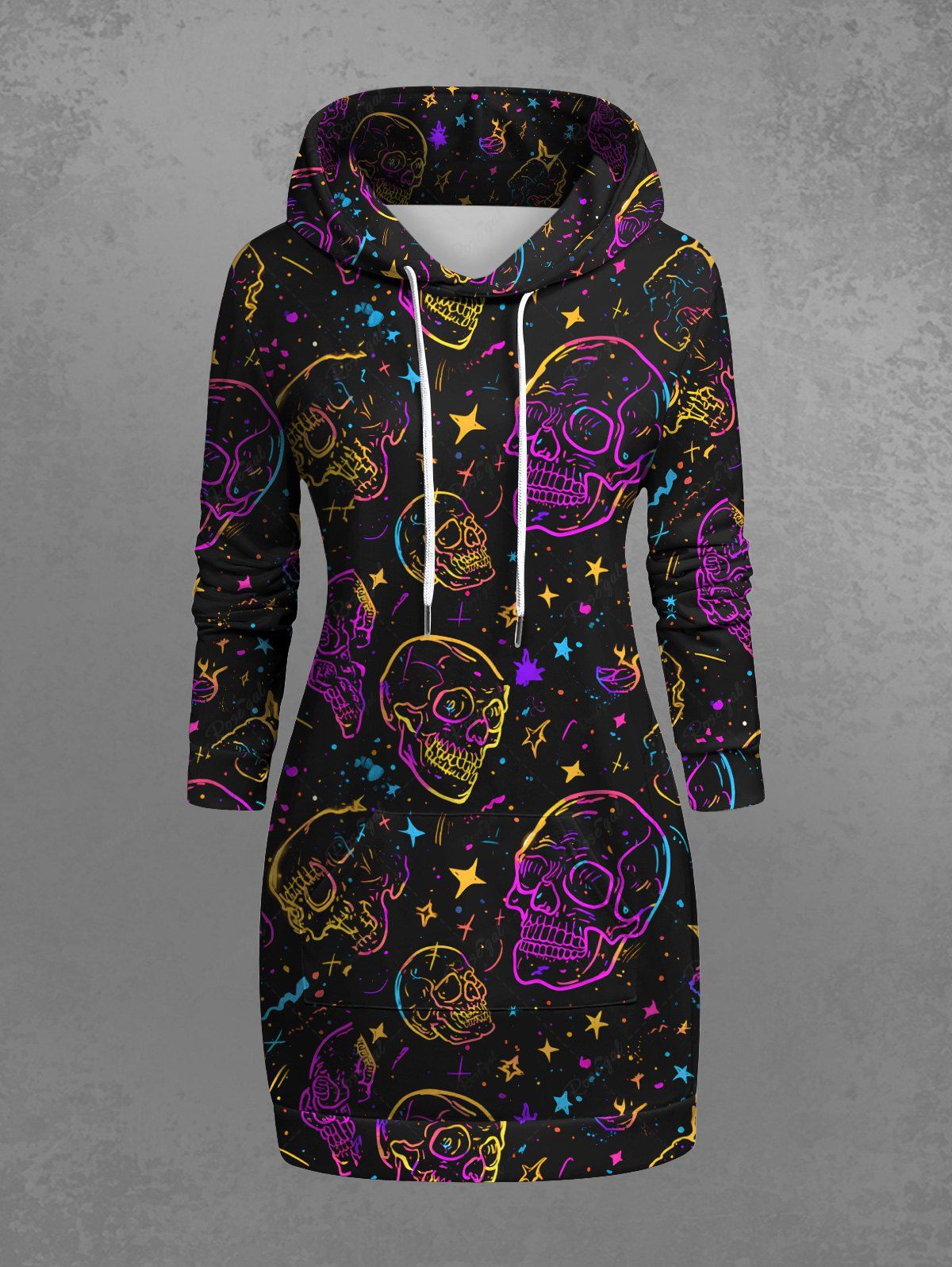 Gothic Plus Size Skulls Stars Print Drawstring Pockets Hoodie