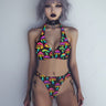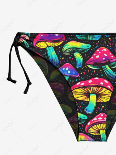 Gothic Colorful Mushroom Print Plunging Halter Backless Bikini Set
