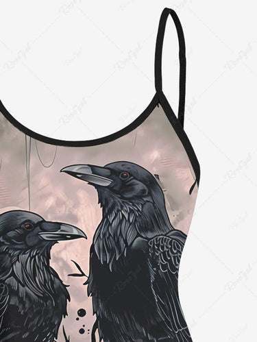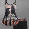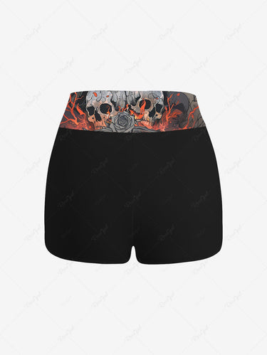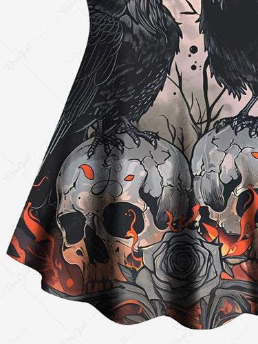 Gothic Plus Size Distressed Eagle Skulls Fire Flame Rose Flower Print Boyleg Tankini Swimsuit (Adjustable Shoulder Strap)
