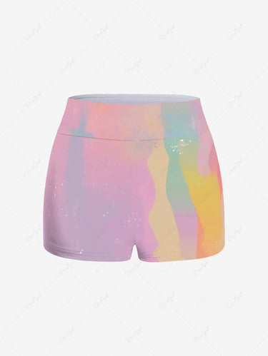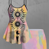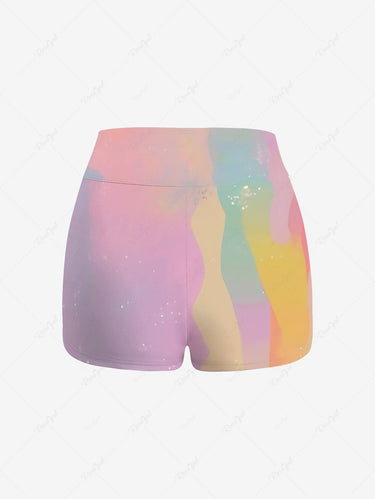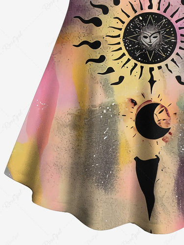 Gothic Plus Size Galaxy Sun Moon Ombre Tie Dye Print Boyleg Tankini Swimsuit(Adjustable Shoulder Strap)